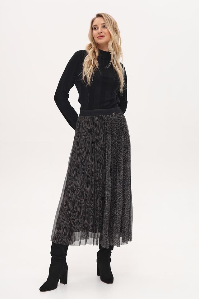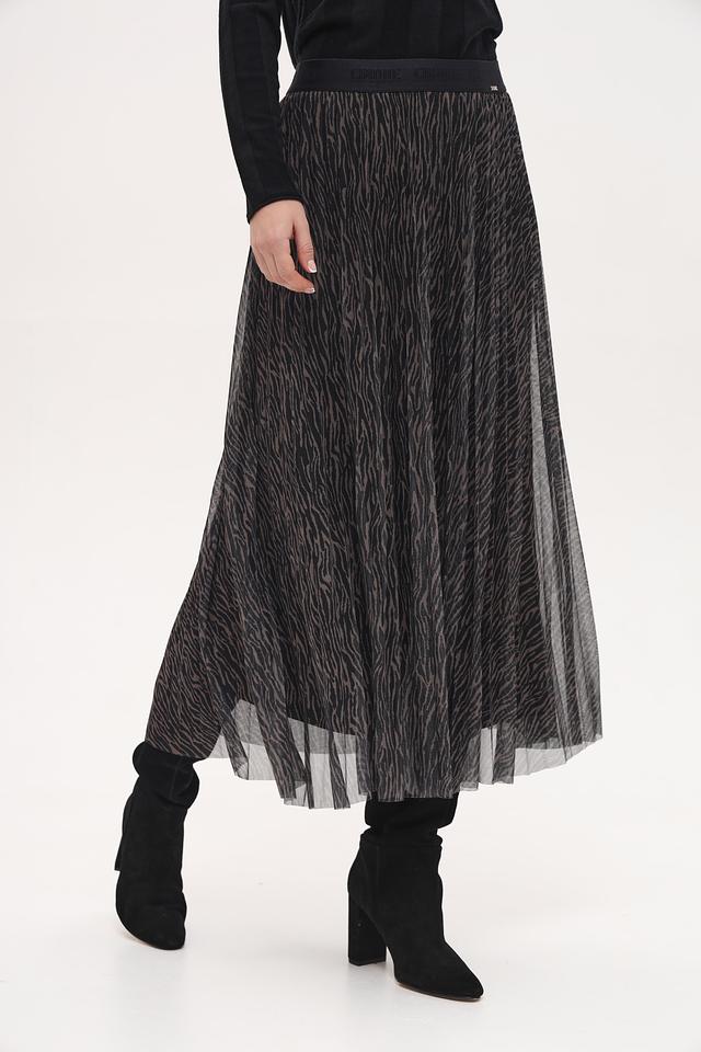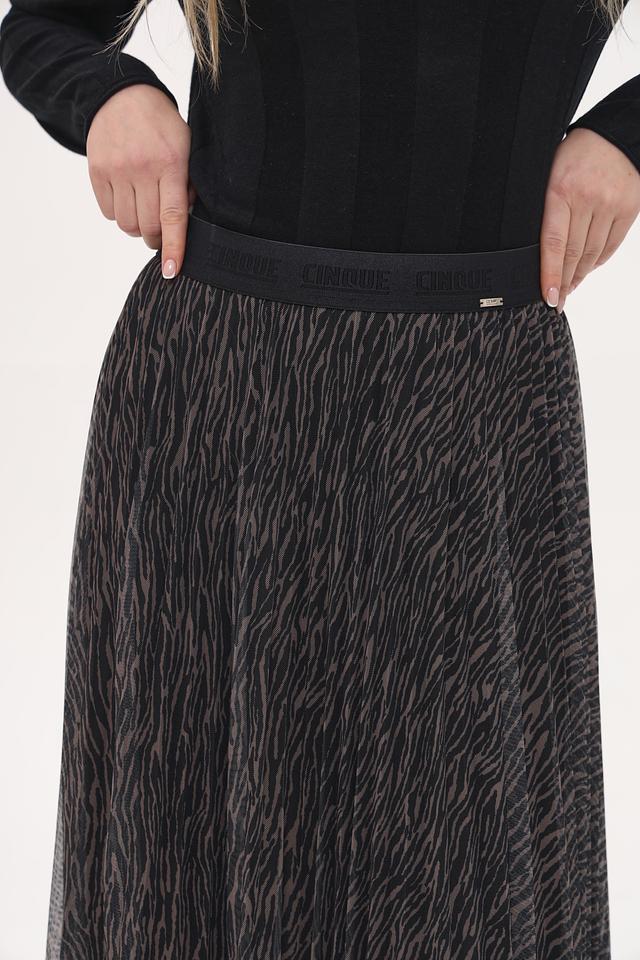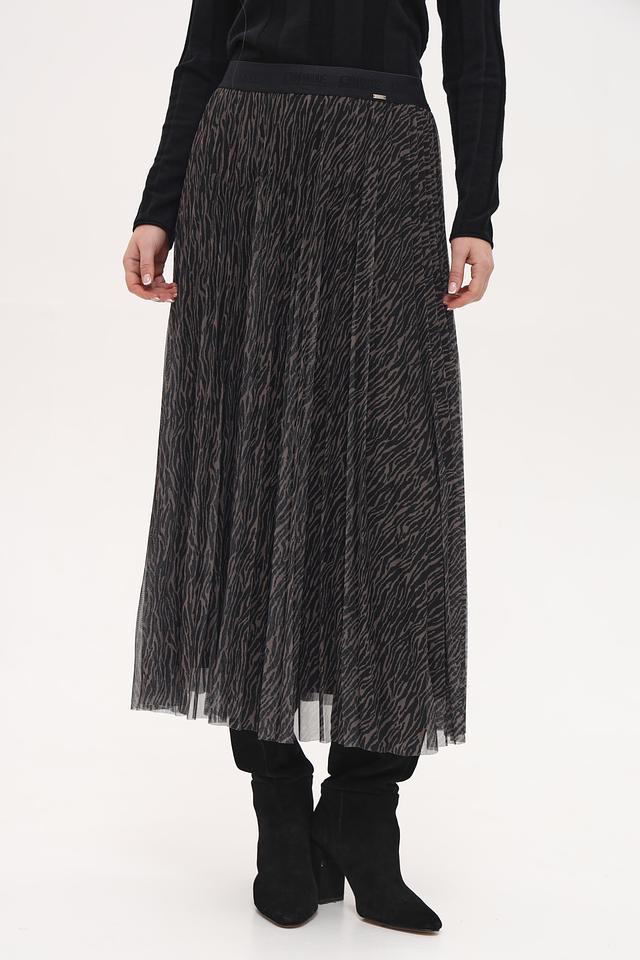 Юбка Cinque черного цвета с оригинальным принтом "зебра" станет стильным дополнением вашего гардероба. Модель выполнена из легкой плиссированной ткани и имеет удобную эластичную талию. Состав: полиэстер 95%, эластан 5%