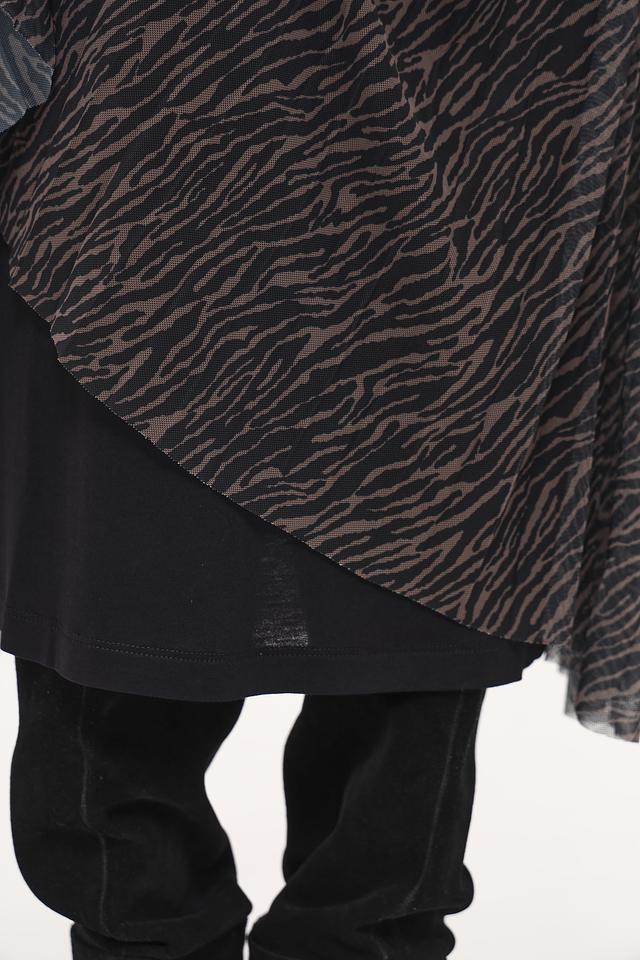 Эта юбка от бренда Cinque – отличный выбор для создания модных и комфортных образов. Модель выполнена в черном цвете и украшена эффектным принтом, имитирующим шкуру зебры.