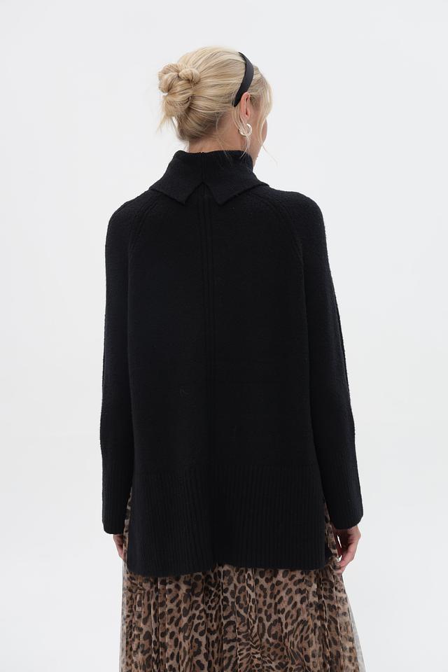 Этот чёрный пуловер от бренда Cinque станет незаменимой вещью в вашем гардеробе. Высокий горловина обеспечивает дополнительное тепло и защиту от холода, а свободный крой позволяет создать расслабленный и уютный образ.