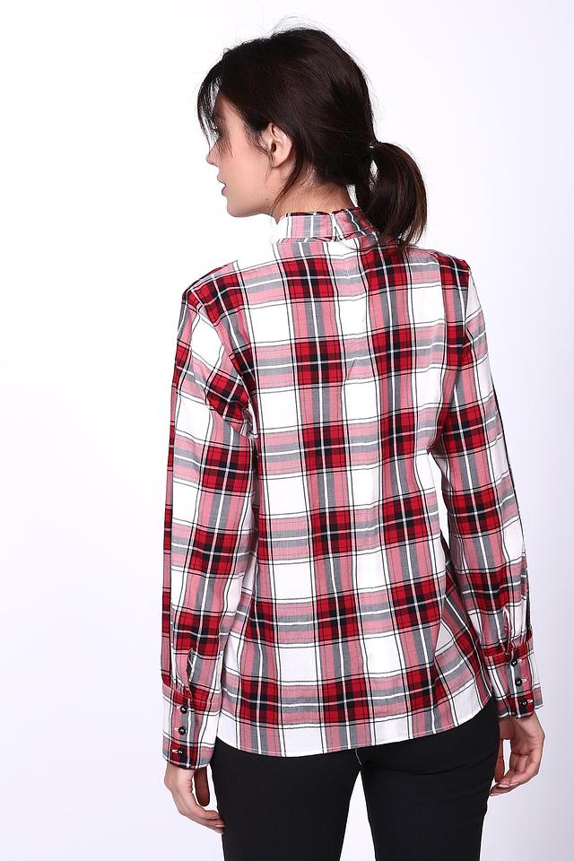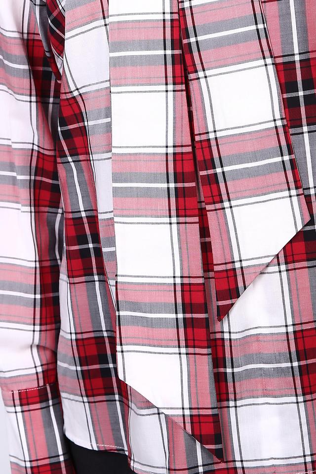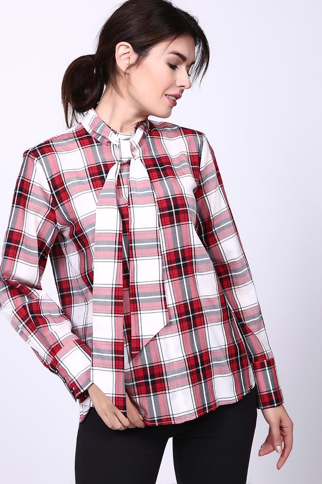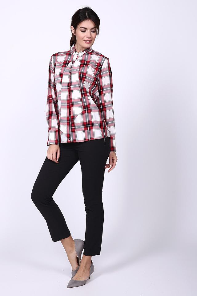 Эта стильная блуза от бренда Cinque выполнена в классической клетке, сочетающей в себе красный, белый и серый цвета. Модель имеет длинные рукава с манжетами на пуговицах и воротник с изящной завязкой, которая позволяет создавать различные образы.