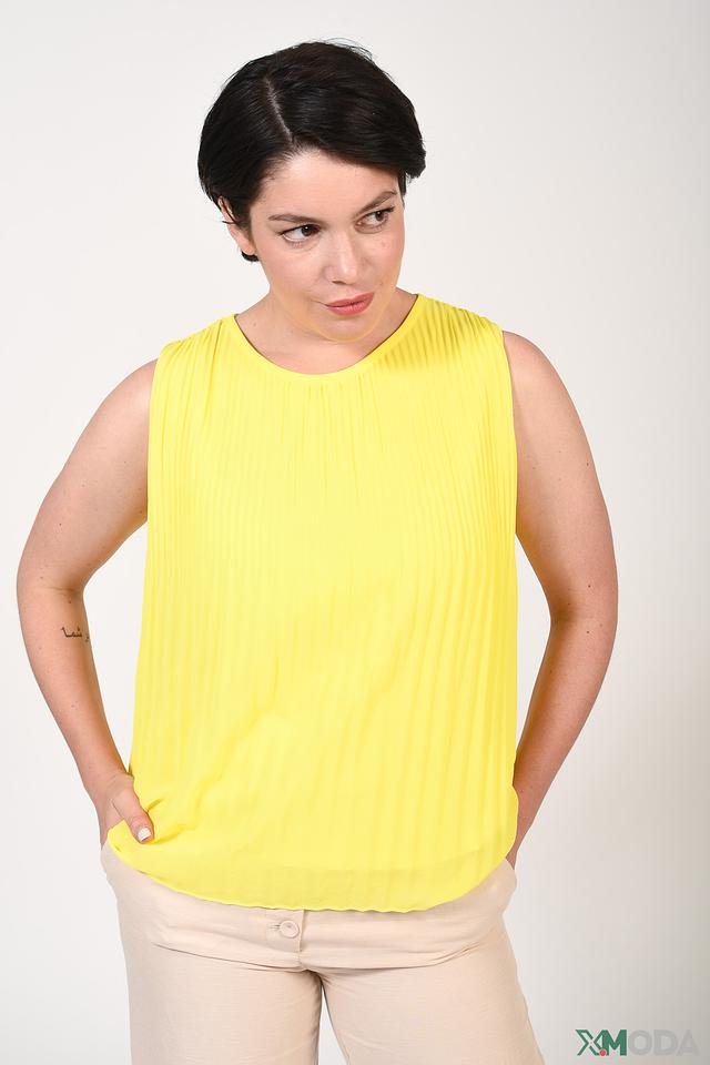 Жёлтый топ от Cinque – это стильная и удобная модель без рукавов с плиссированной текстурой. Изготовлен из 100% полиэстера, что обеспечивает легкость и комфорт в носке. Идеальный выбор для создания яркого летнего образа. Состав: полиэстер 100%