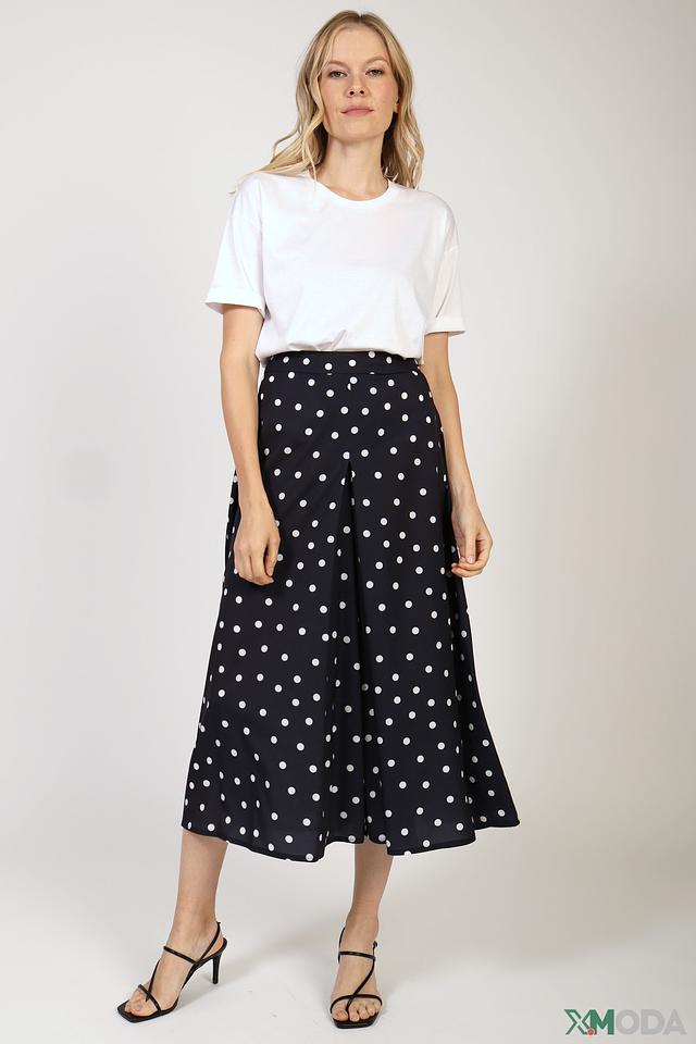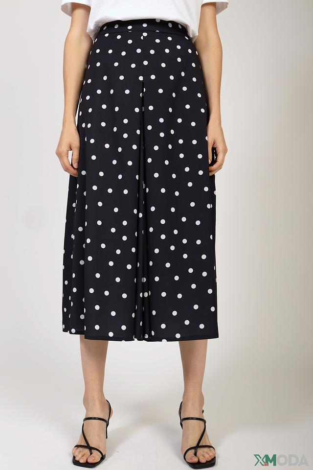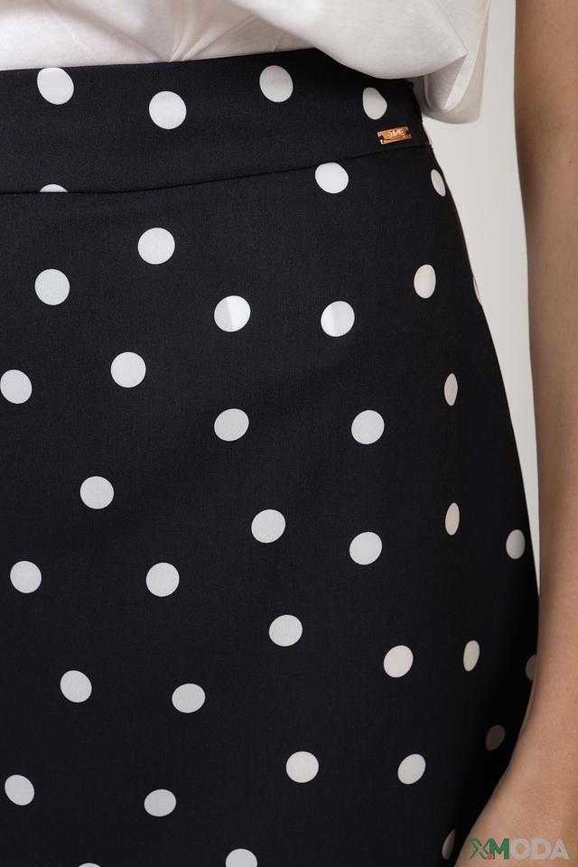 Эта юбка от бренда Cinque станет прекрасным дополнением к вашему гардеробу. Она выполнена в классическом чёрном цвете и украшена контрастным белым горошком, что придает ей игривый и женственный вид.