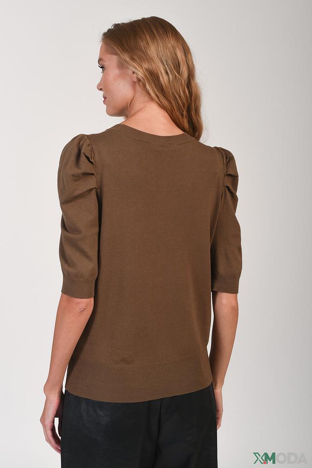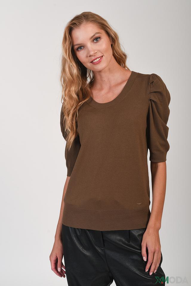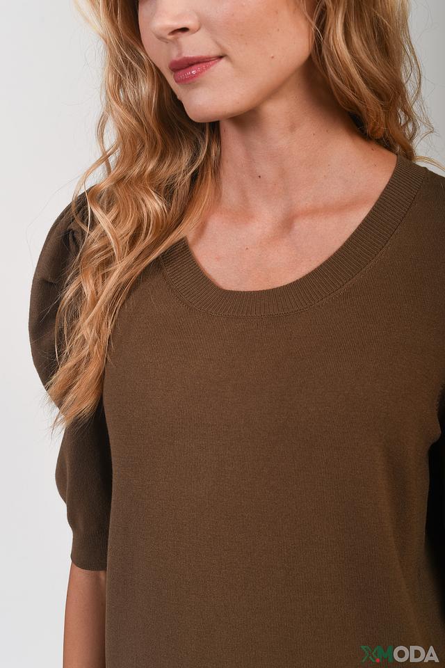 Коричневый пуловер от Cinque с короткими рукавами-фонариками и V-образным вырезом. Модель выполнена из мягкой вискозы с добавлением полиамида, что обеспечивает комфорт и приятные тактильные ощущения. Состав: вискоза 80%, полиамид 20%
