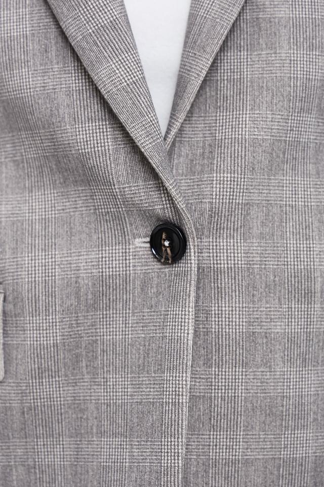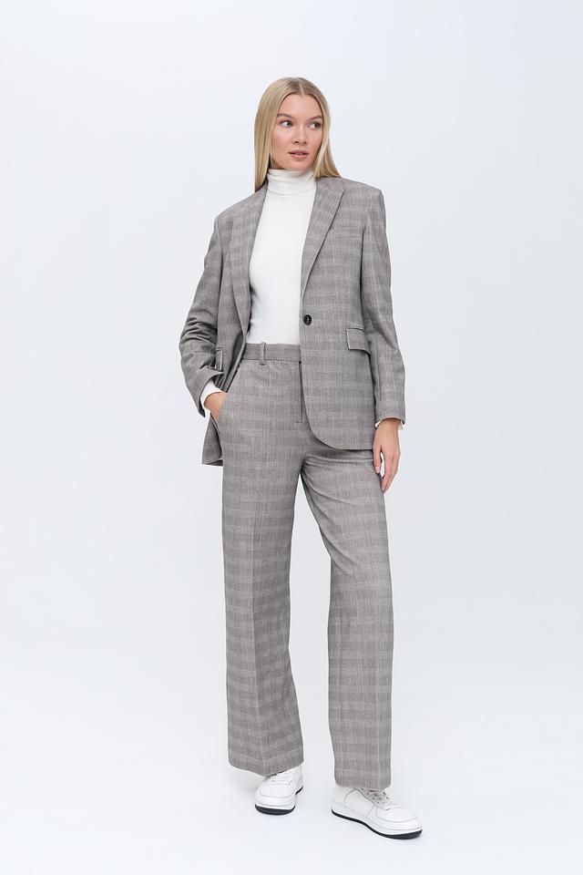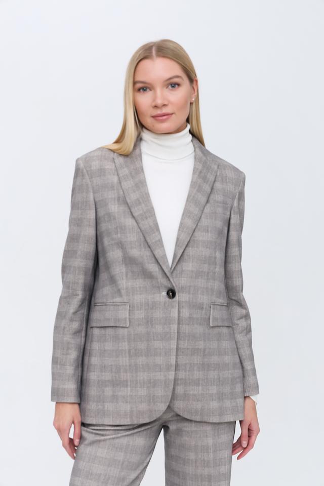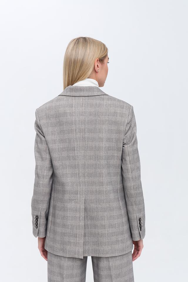 Этот жакет от Circolo 1901 выполнен в серой цветовой гамме и имеет классический клетчатый рисунок. Жакет имеет прямой крой, который обеспечивает комфортную посадку по фигуре.