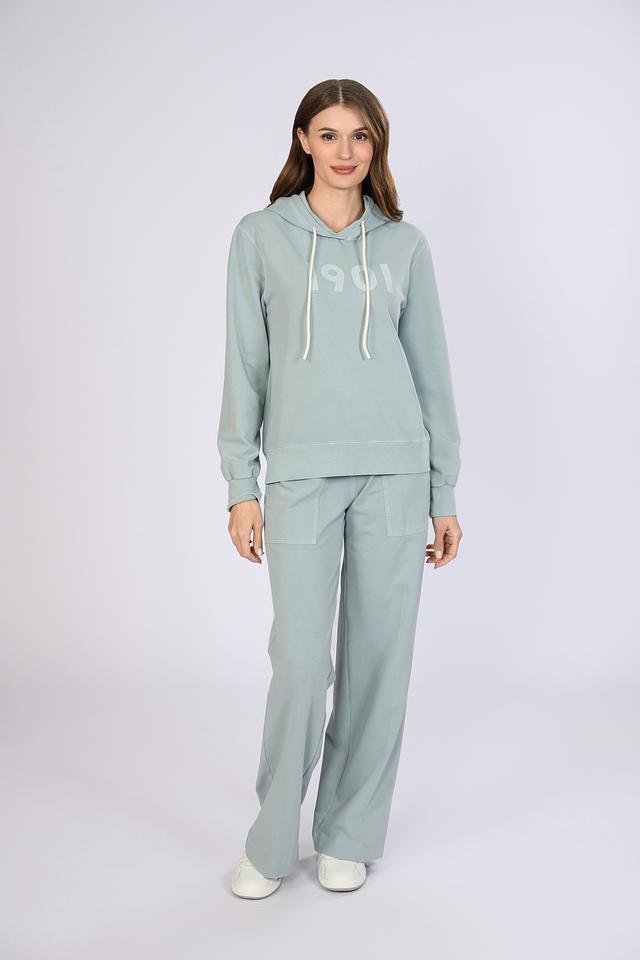 Бирюзовый джемпер Circolo 1901 с капюшоном и надписью "1901" — удобная и стильная модель для повседневной носки. Изготовлен из мягкого хлопка с добавлением эластана для комфорта и свободы движений. Состав: хлопок 93%, эластан 7%