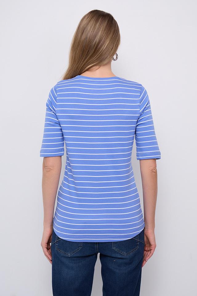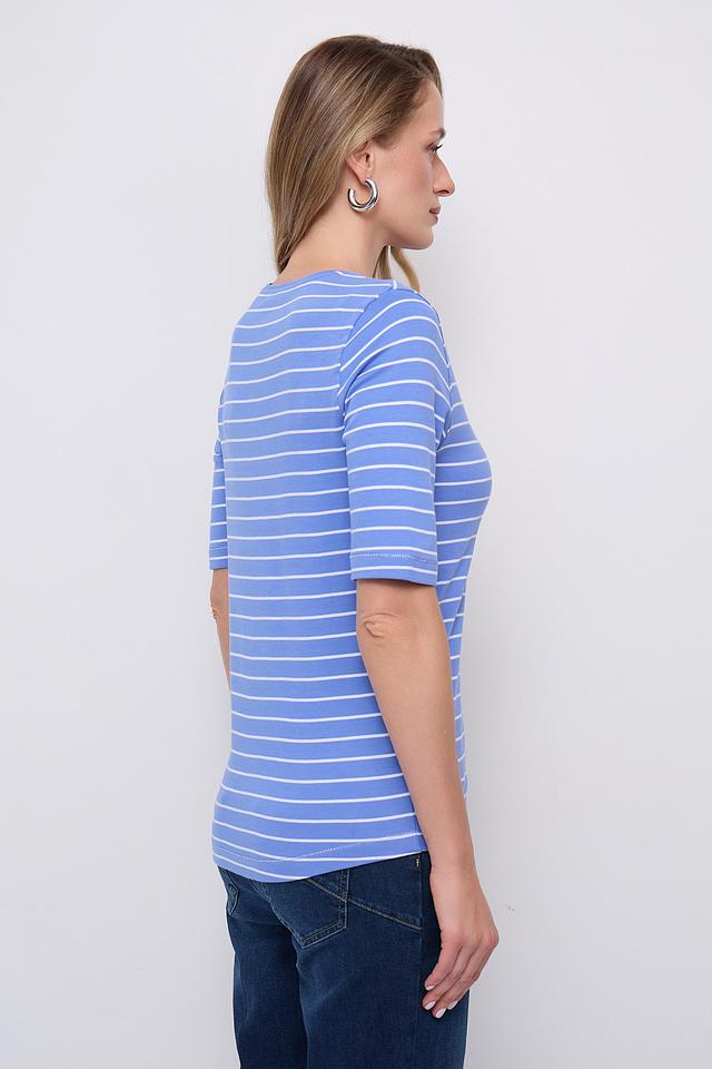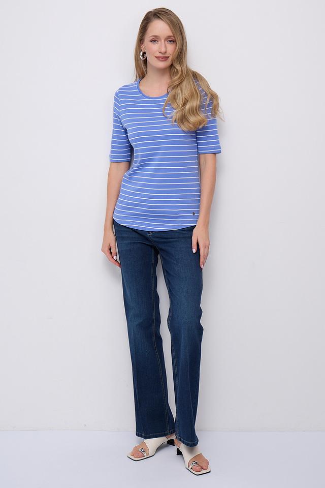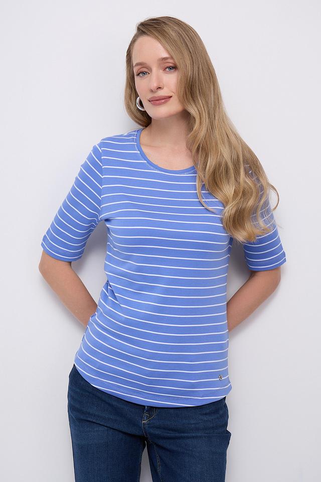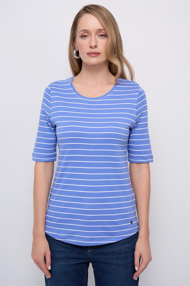 Женская футболка Clarina голубого цвета в белую полоску – это стильная и комфортная модель на каждый день. Футболка выполнена из 100% хлопка, что обеспечивает приятные ощущения при носке и отличную воздухопроницаемость. Состав: хлопок 100%