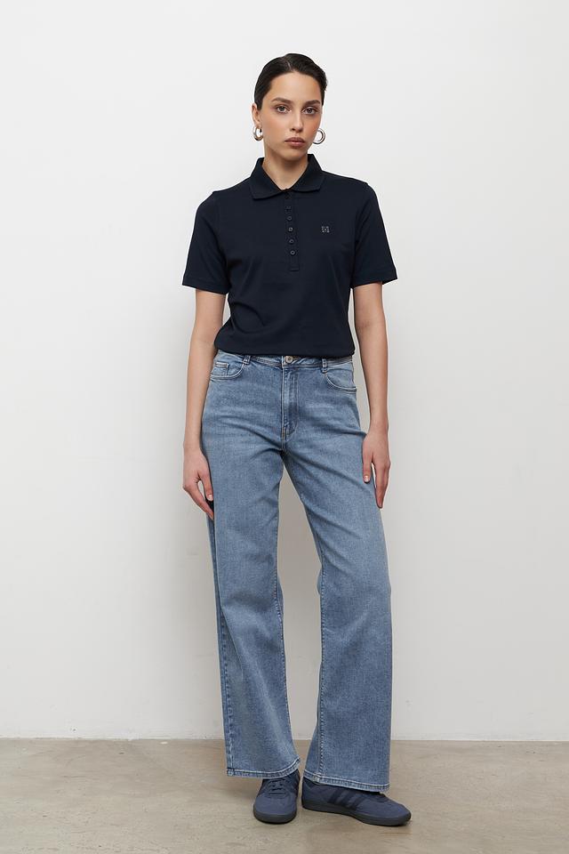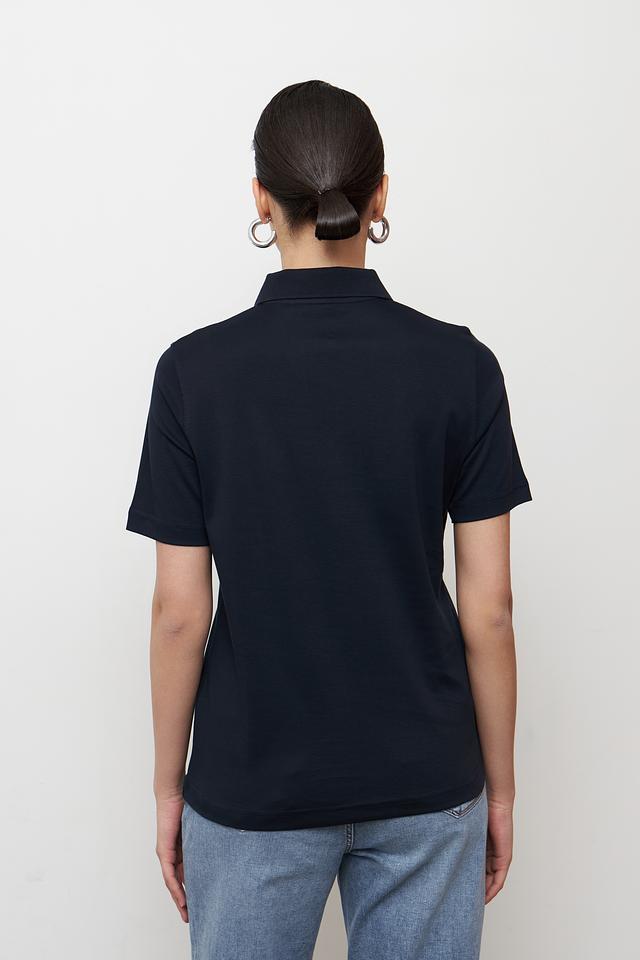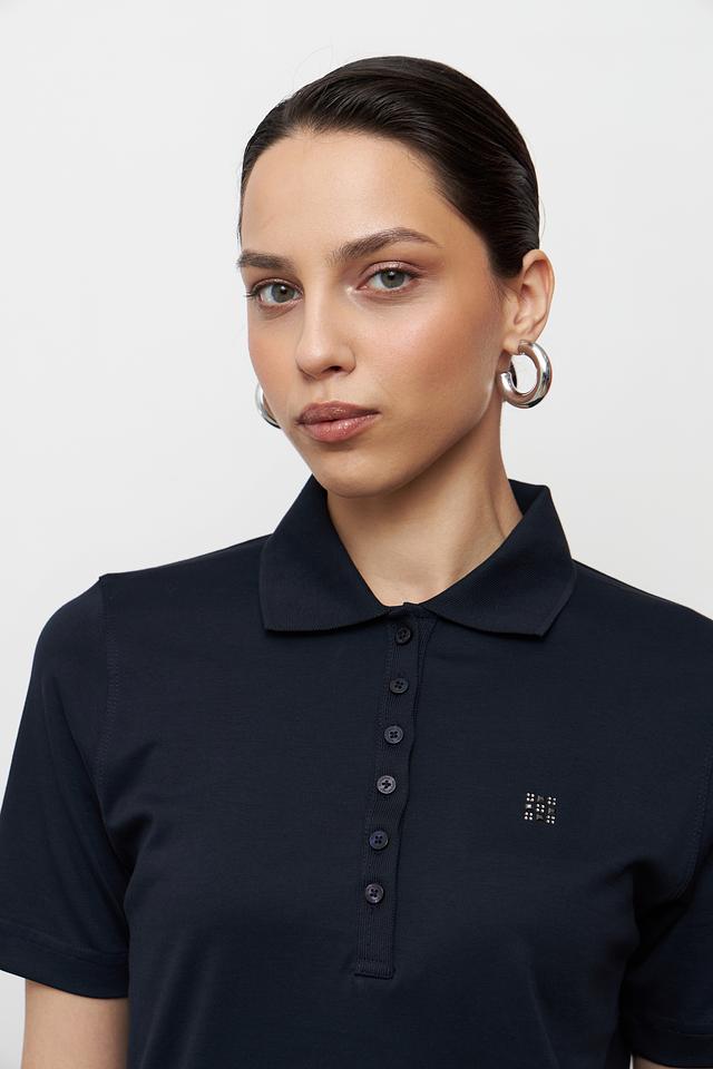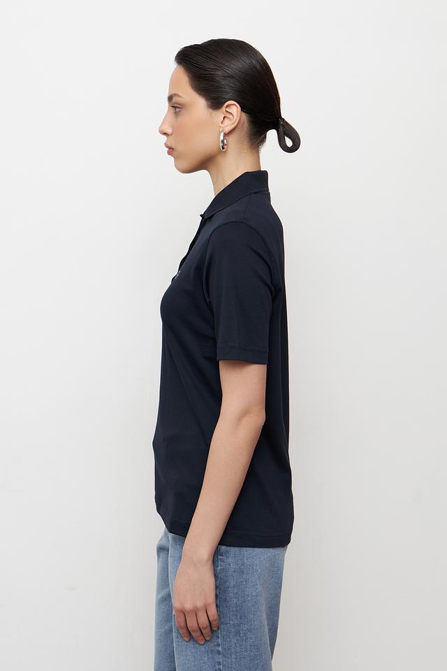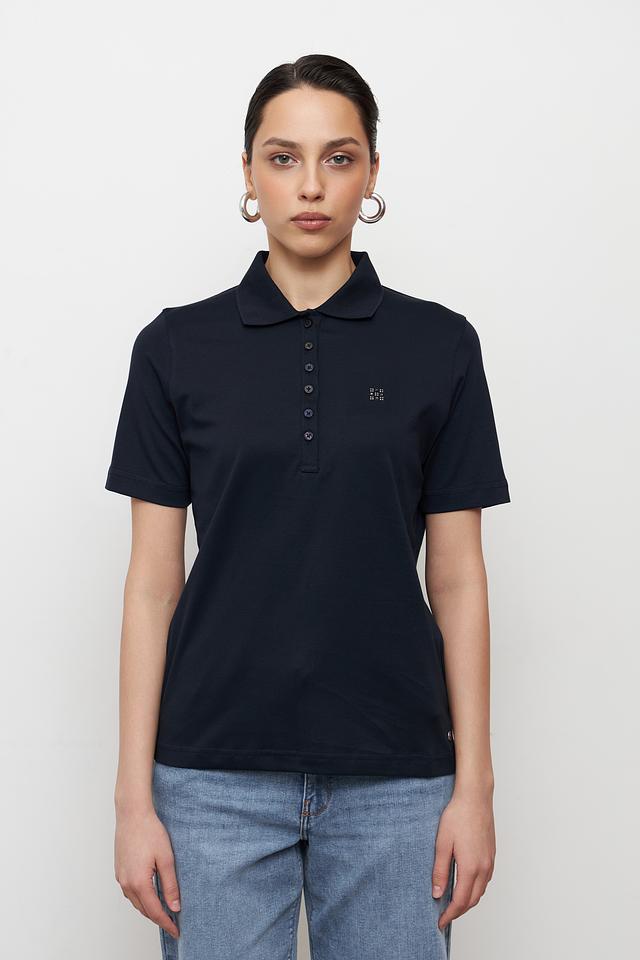 Небольшой логотип бренда размещен на груди. Эта модель поло идеально подходит для создания повседневных образов, сочетаясь с джинсами, брюками или юбками. Универсальный дизайн позволяет носить поло как самостоятельно, так и под жакет или кардиган.