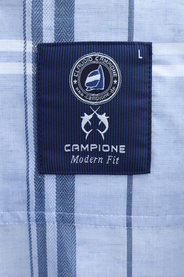 Мужская рубашка Claudio Campione голубого цвета в классическую клетку. Изготовлена из 100% хлопка, обеспечивающего комфорт и воздухопроницаемость. Отличный выбор для создания стильного повседневного образа. Состав: хлопок 100%
