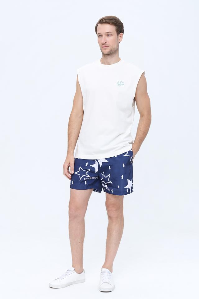 Мужские шорты Claudio Campione синего цвета с ярким принтом в виде звёзд – отличный выбор для летнего гардероба. Модель выполнена из быстросохнущего полиэстера, обеспечивающего комфорт в жаркую погоду. Состав: полиэстер 100%