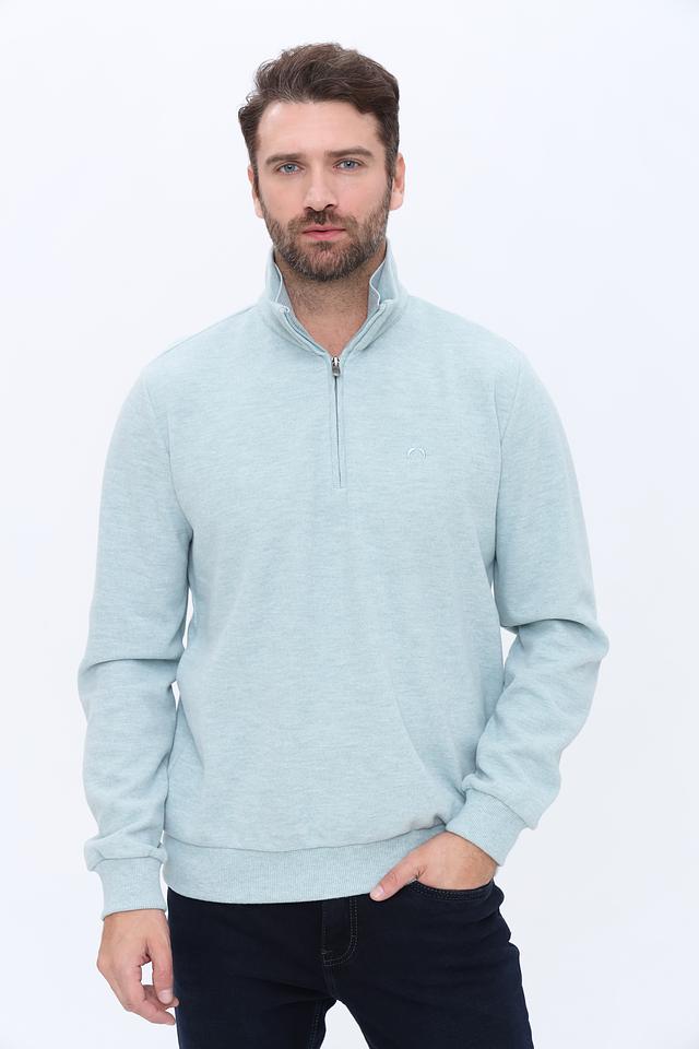 Мужской джемпер Claudio Campione голубого цвета с короткой молнией на горловине. Изготовлен из мягкого и приятного к телу сочетания хлопка и полиэстера, обеспечивающего комфорт и практичность. Состав: хлопок 65%, полиэстер 35%
