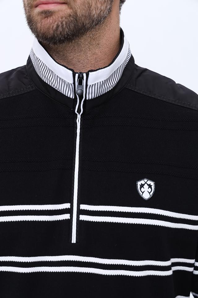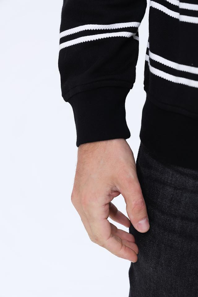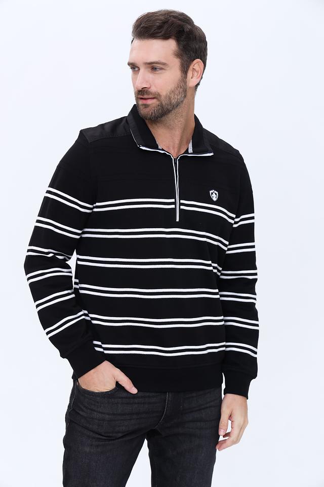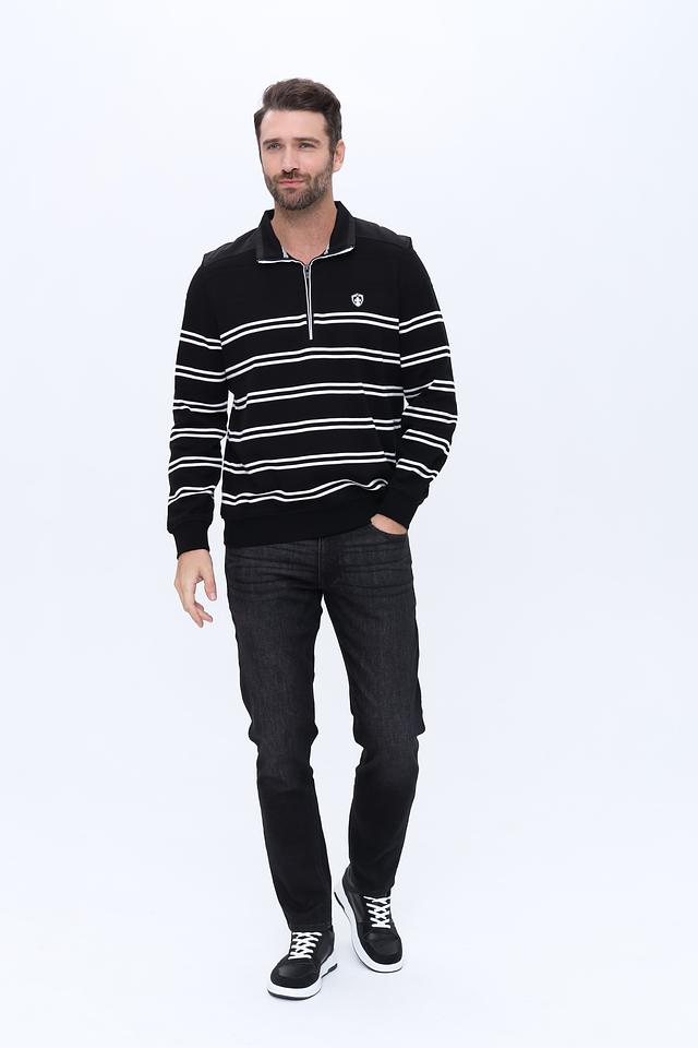 Мужской джемпер Claudio Campione чёрно-белого цвета с полосатым узором и молнией на горловине. Изготовлен из 100% хлопка, обеспечивающего комфорт и удобство в носке. Состав: хлопок 100%