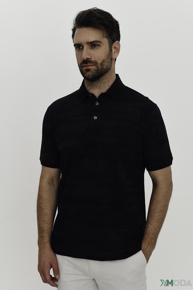Мужское поло от Claudio Campione выполнено в классическом крое из высококачественного хлопка. Преобладающий цвет – чёрный, дополненный едва заметным геометрическим узором, придающим изделию изысканность.