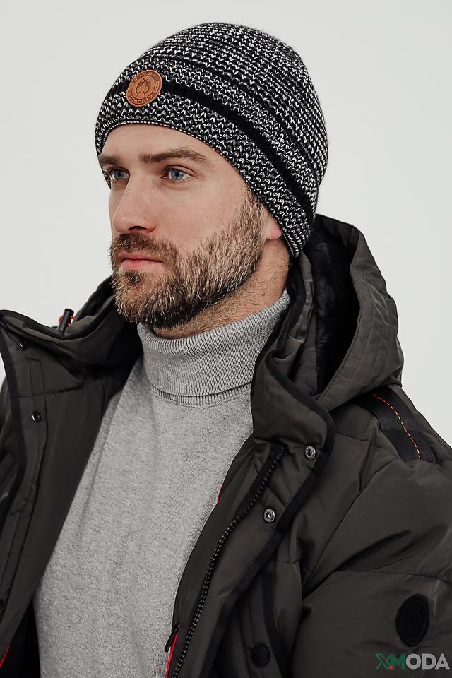Модель выполнена из 100% полиакрила, что обеспечивает мягкость, тепло и долговечность изделия. Чёрно-белый вязаный узор придает шапке современный и универсальный вид, позволяя легко сочетать её с различной верхней одеждой.