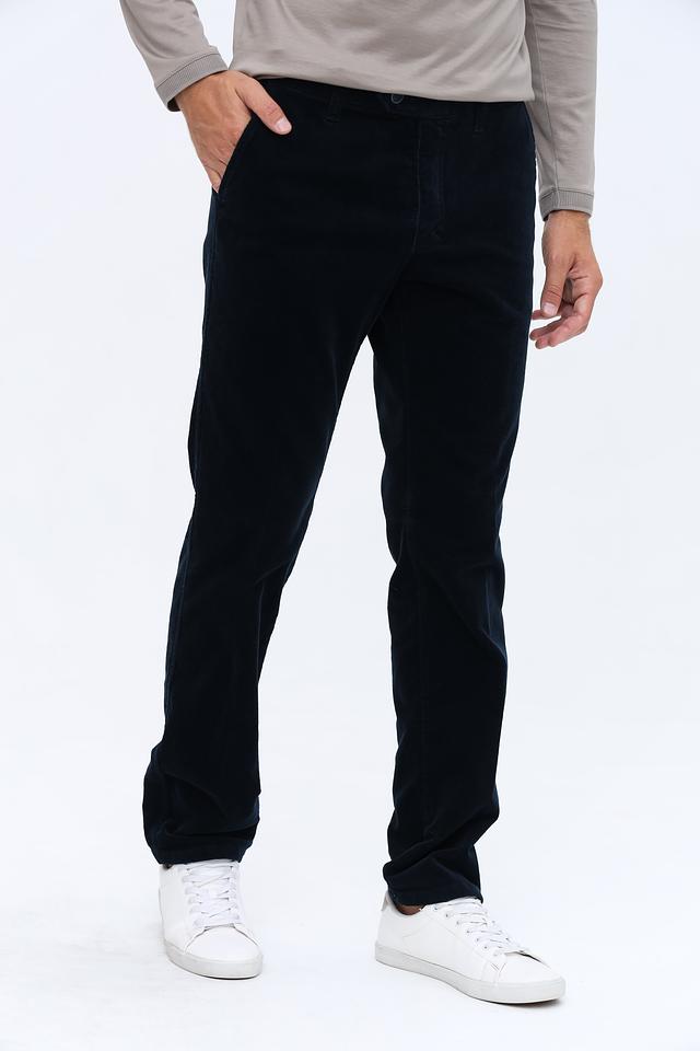 Мужские брюки Club of comfort тёмно-синего цвета выполнены из мягкого вельвета с добавлением эластана для комфортной посадки. Классический крой и удобный пояс на резинке делают эти брюки идеальным выбором для повседневной носки. Состав: хлопок 98%, эластан 2%