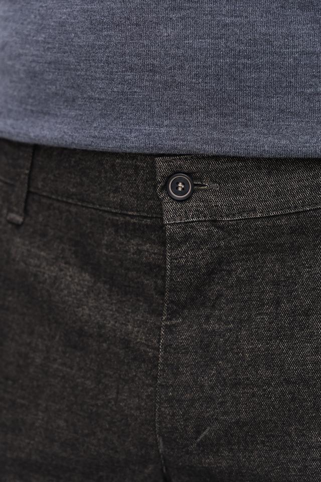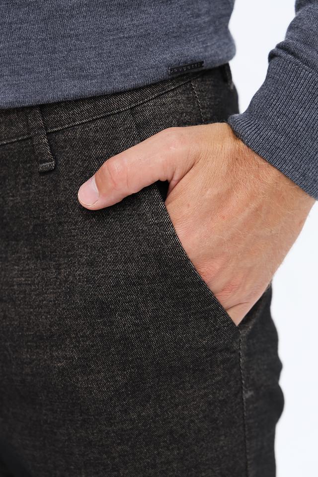 Брюки изготовлены из смеси хлопка, полиэстера, вискозы и эластана, что обеспечивает комфорт в носке, хорошую посадку по фигуре и устойчивость к сминанию. Ткань приятна на ощупь и позволяет коже дышать.