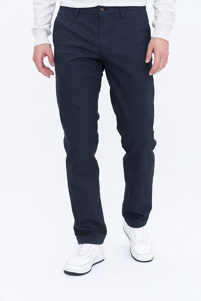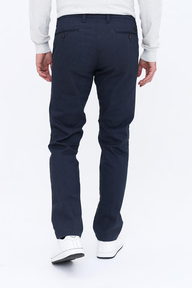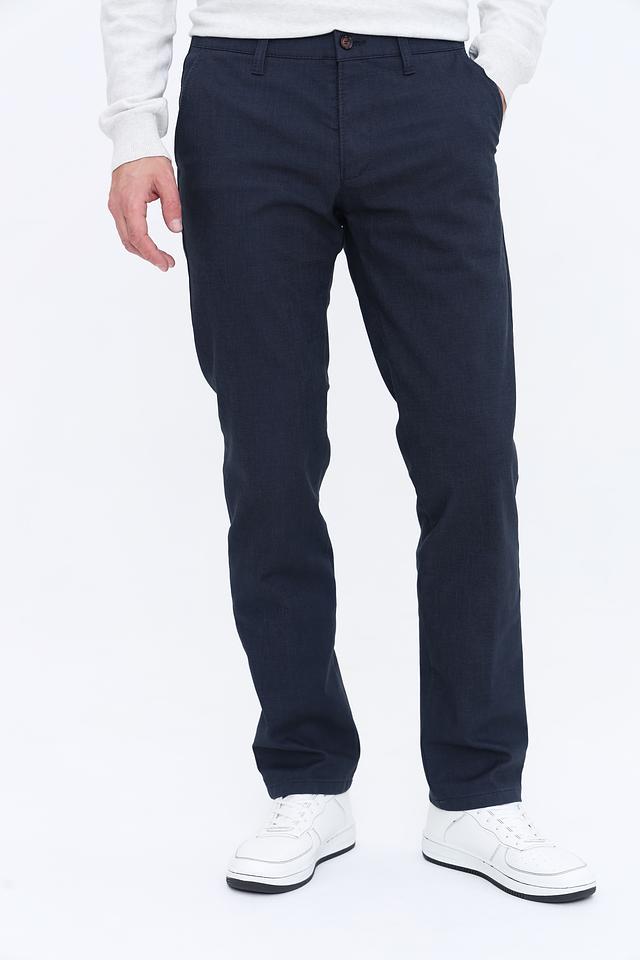 Цвет брюк – насыщенный темно-синий, который легко сочетается с различными элементами гардероба. Брюки имеют стандартную посадку на талии, застежку на молнию и пуговицу, а также функциональные карманы. Это отличный выбор для создания повседневных образов.