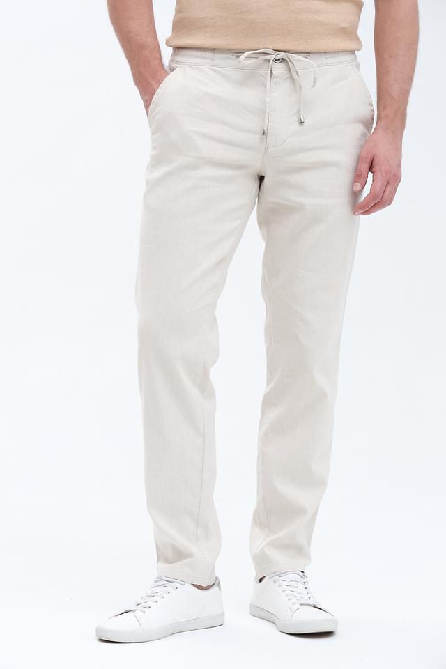 Бежевые брюки Club of comfort – это удобная и стильная модель с эластичным поясом и завязками. Брюки выполнены из смесовой ткани, сочетающей лен, полиэстер и эластан, что обеспечивает комфорт и практичность. Состав: лен 56%, полиэстер 41%, эластан 3%