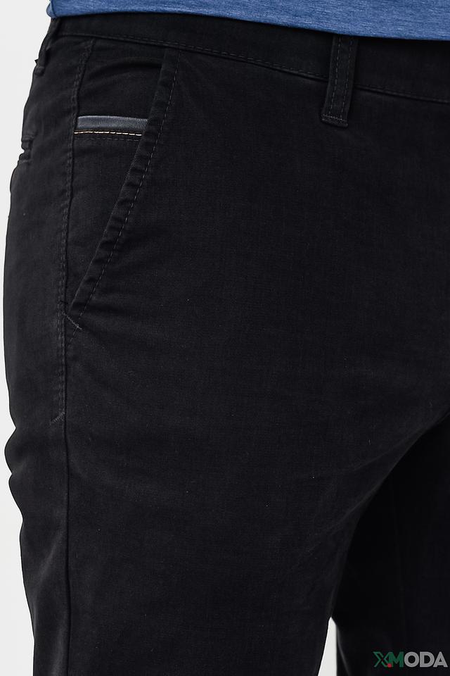Цвет брюк – насыщенный чёрный, что делает их универсальными и подходящими для создания различных образов. Брюки оснащены стандартным набором карманов: двумя боковыми и двумя задними. Застежка – молния и пуговица. Состав: хлопок 98%, эластан 2%.