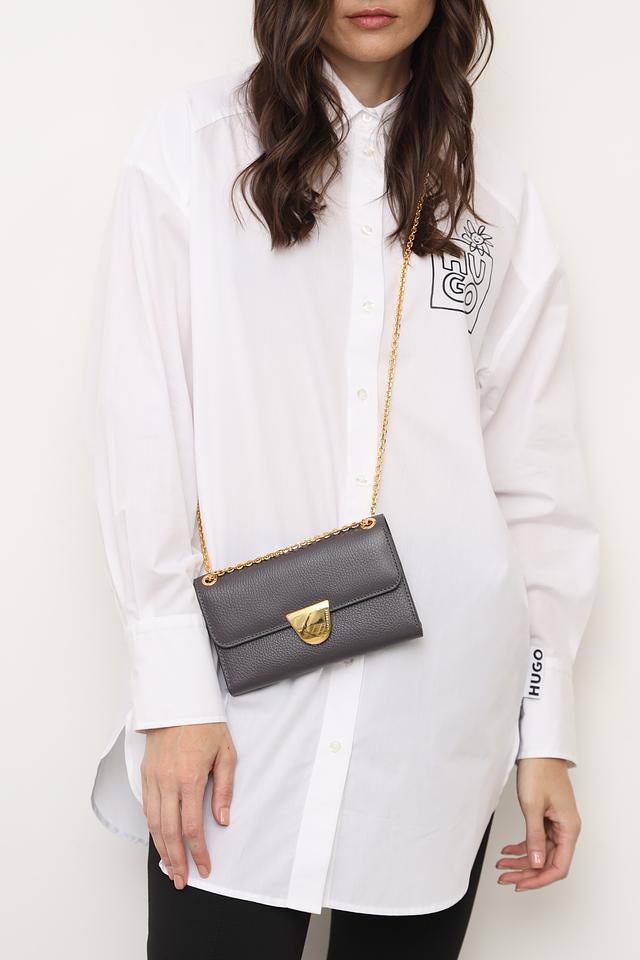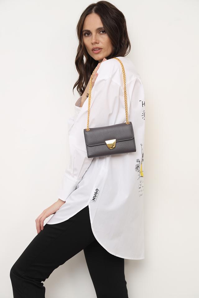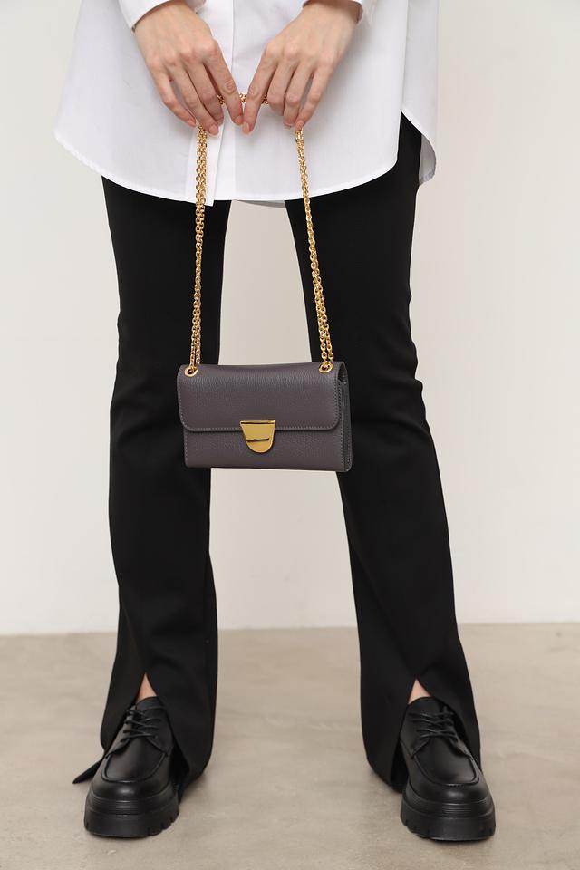 Благодаря регулируемой цепочке, сумку можно носить на плече или через плечо, что обеспечивает комфорт в использовании. Внутреннее пространство сумки достаточно вместительное для хранения необходимых мелочей, таких как телефон, кошелек и ключи.