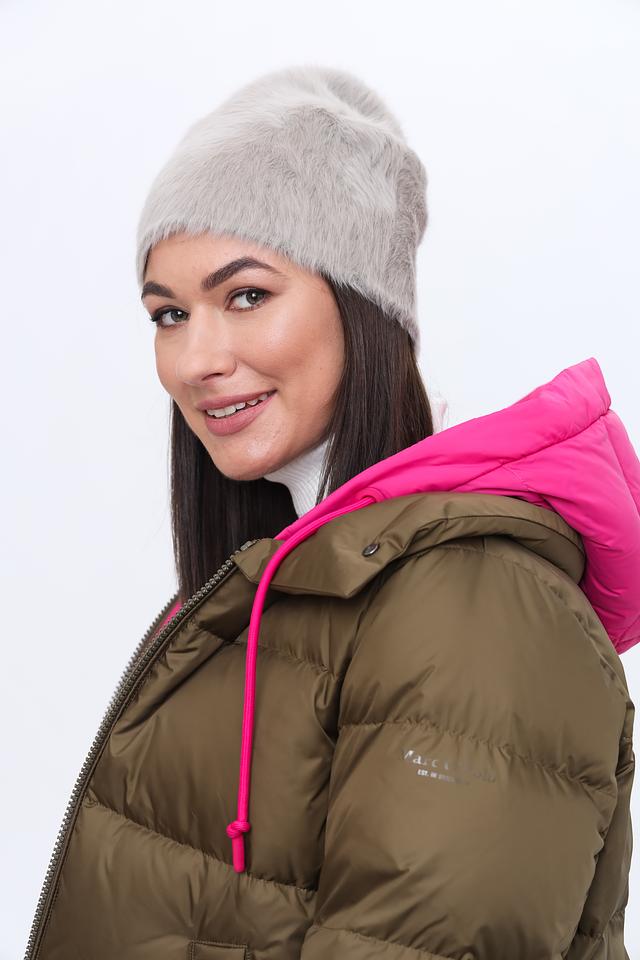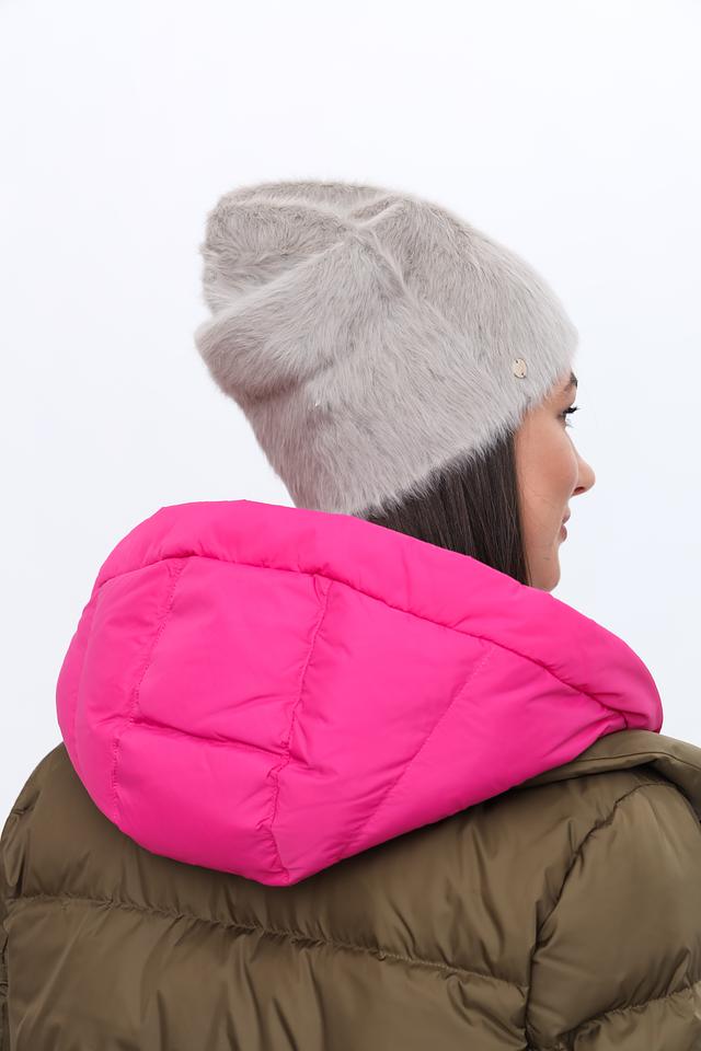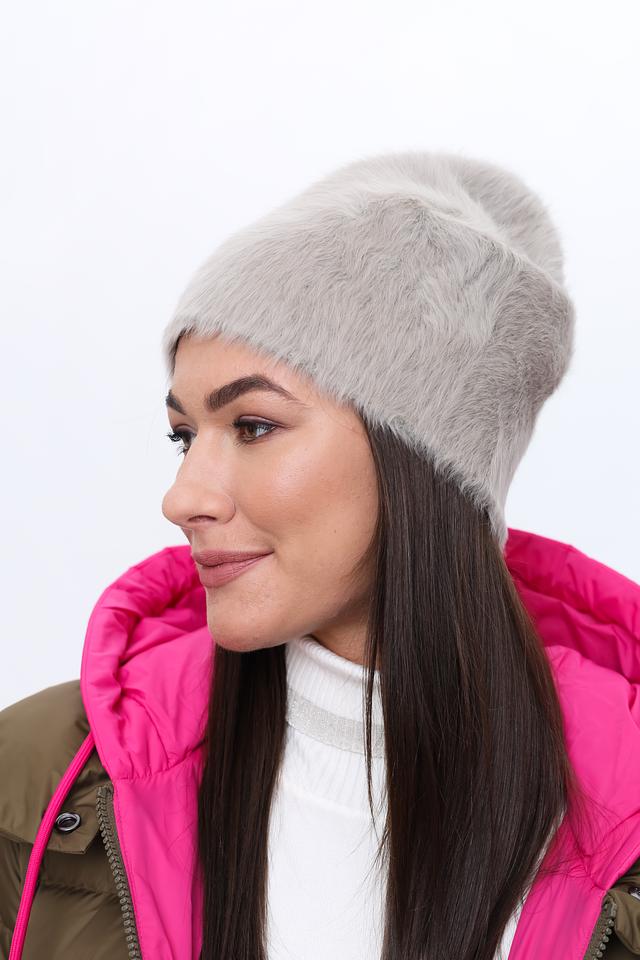 Шапка имеет классическую форму и нейтральный серый цвет, который легко сочетается с различными элементами гардероба. Благодаря высокому содержанию ангоры, шапка отлично сохраняет тепло, обеспечивая комфорт даже в самые холодные дни.