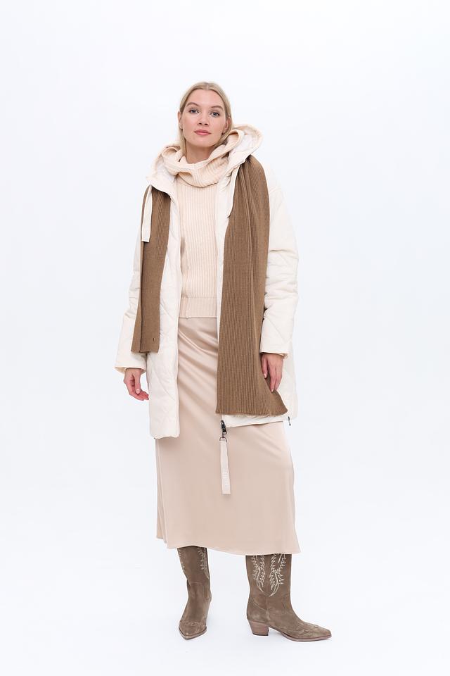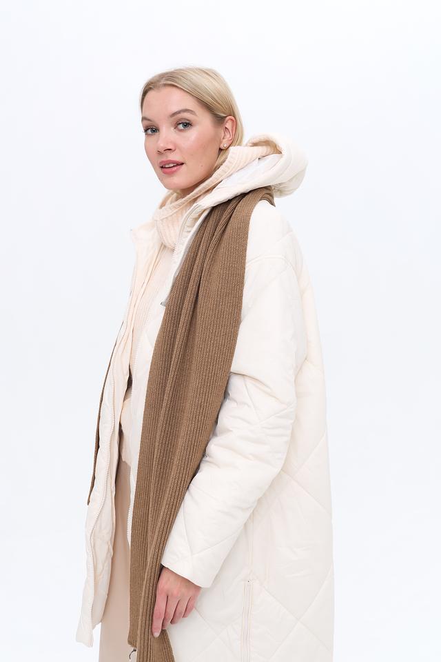 Текстура шарфа – вязка в рубчик, что придает ему объем и фактурность. Длина шарфа позволяет носить его различными способами, создавая разнообразные образы. Этот шарф станет отличным дополнением к пальто, куртке или пуховику, а также подчеркнет ваш индивидуальный стиль.