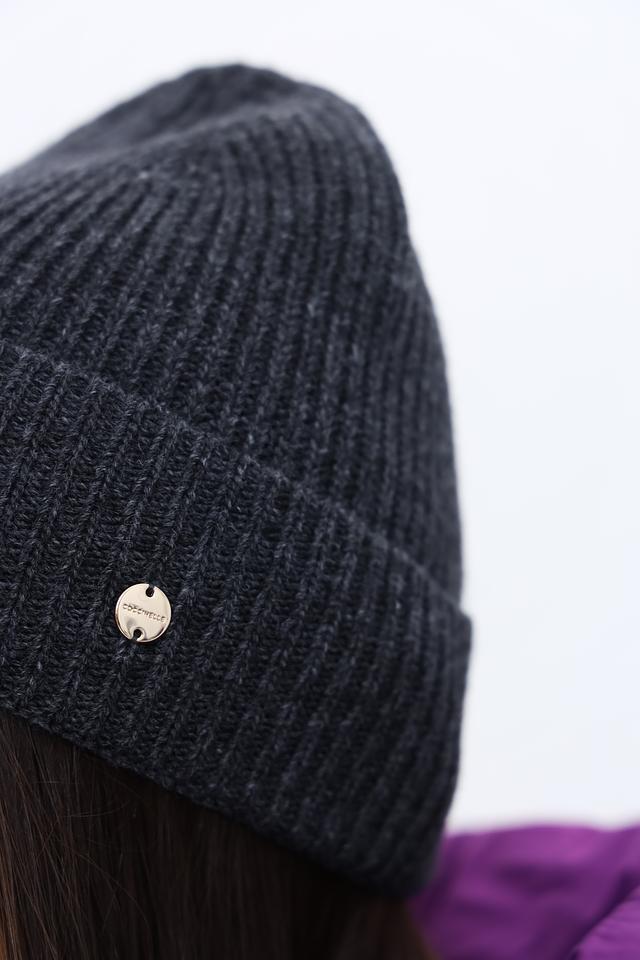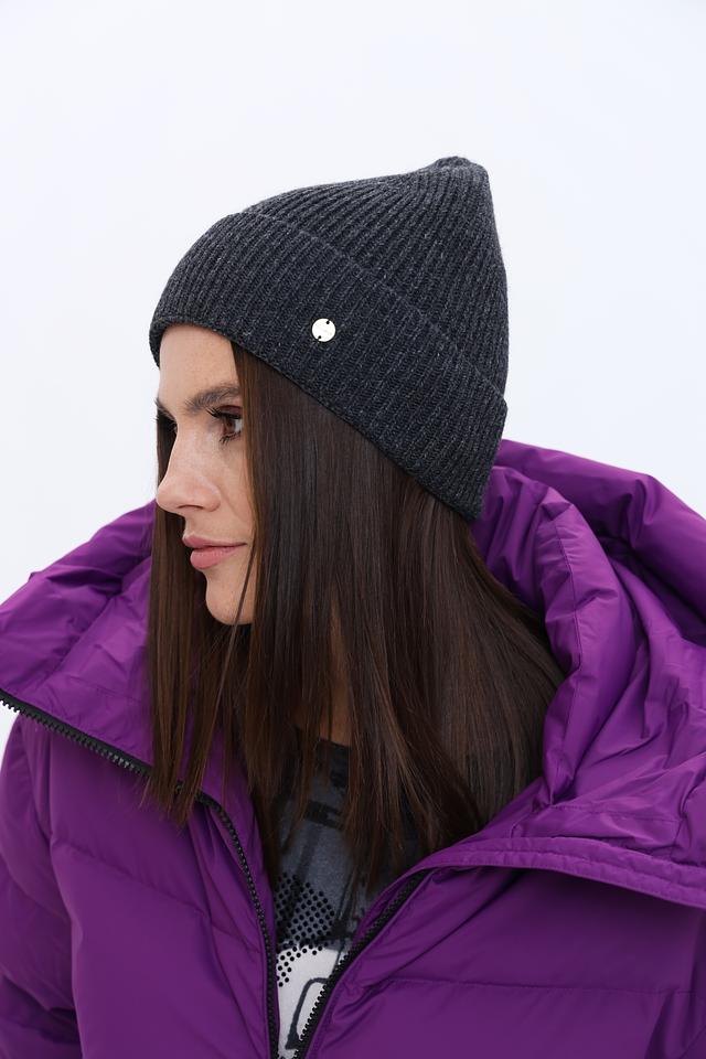 Шапка имеет классическую форму и выполнены в сером цвете с рубчатой текстурой. Небольшой металлический логотип бренда добавляет изысканности и узнаваемости.