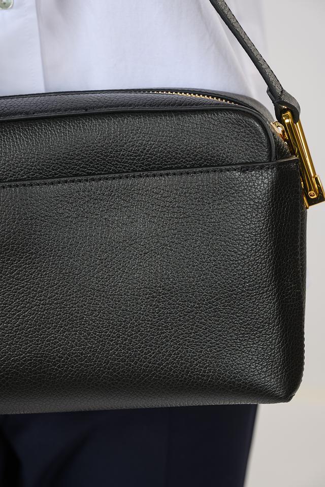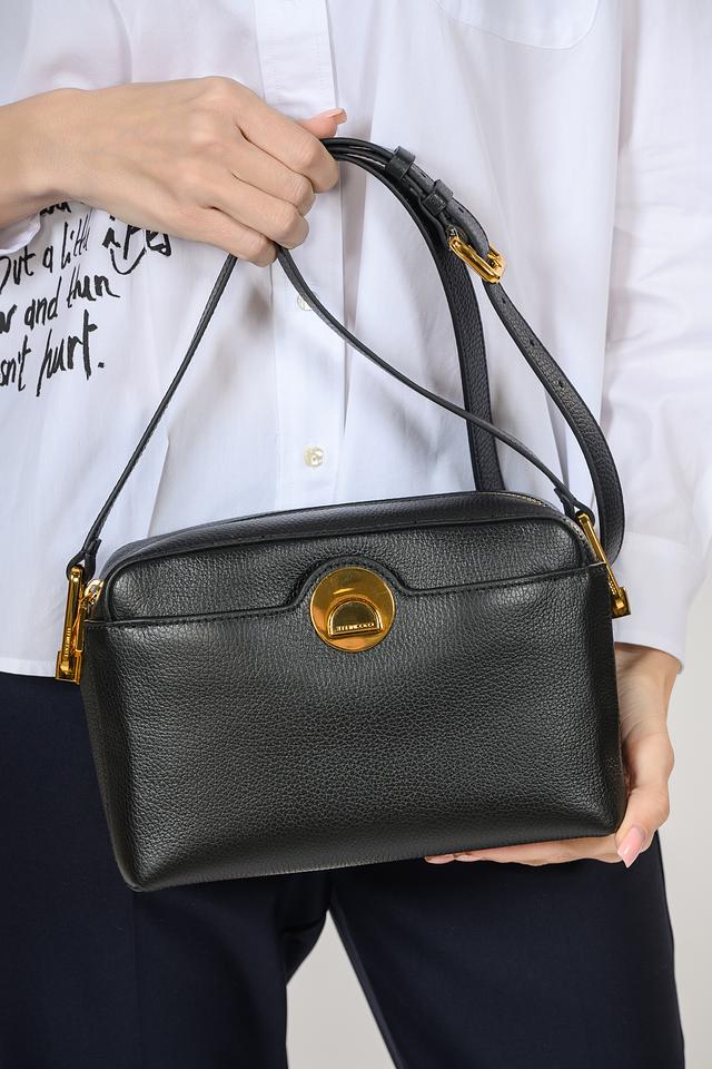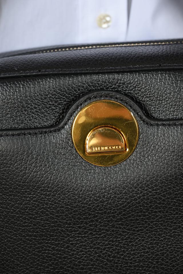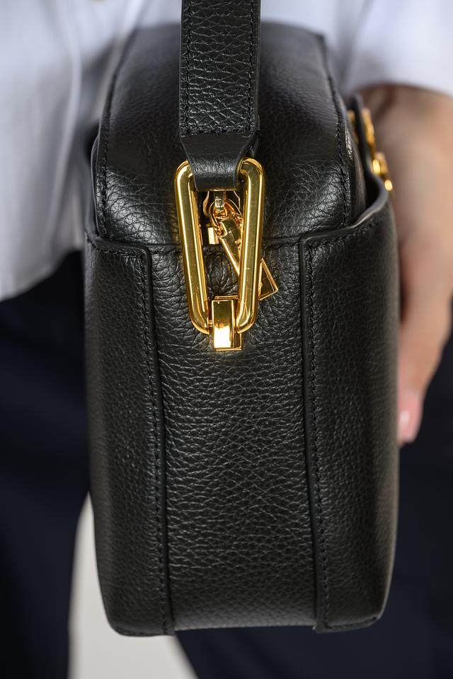 Сумка имеет лаконичный дизайн и классическую форму. Чёрный цвет делает её универсальной и подходящей к любому наряду. Золотистая фурнитура добавляет изысканности и подчеркивает элегантность аксессуара.