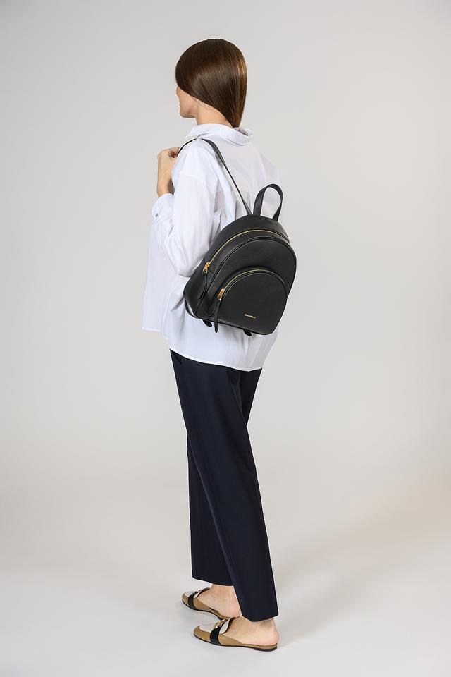 Рюкзак имеет лаконичный дизайн, который легко сочетается с различной одеждой. Чёрный цвет делает его универсальным и подходящим для любого случая. Золотистая фурнитура добавляет изысканности.