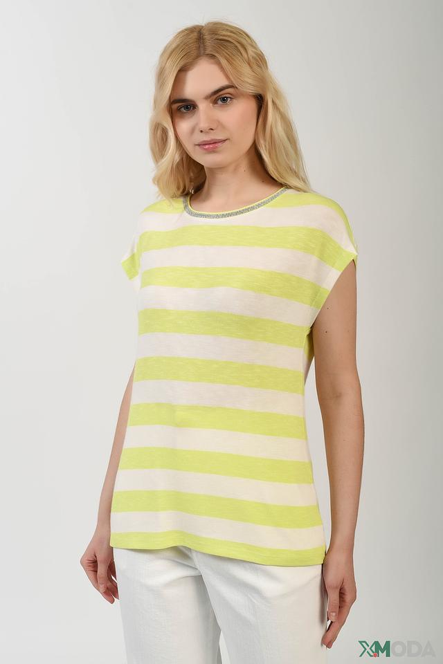 Женская футболка Comma лаймового цвета с белыми полосками – стильная и комфортная модель на каждый день. Футболка выполнена из мягкой вискозы с добавлением полиэстера и эластана, что обеспечивает приятные ощущения при носке и сохранение формы. Состав: вискоза 80%, полиэстер 15%, эластан 5%
