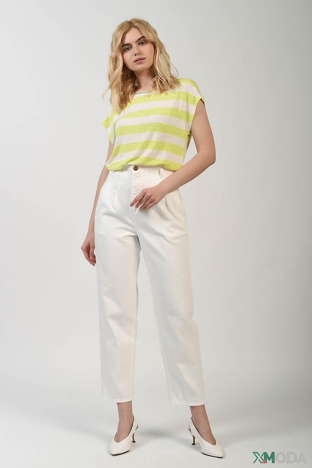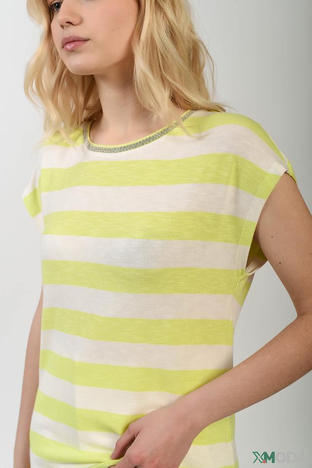 Эта футболка от Comma станет отличным дополнением к вашему гардеробу. Модель выполнена в горизонтальную полоску, сочетающую лаймовый и белый цвета, что придает ей свежий и летний вид.