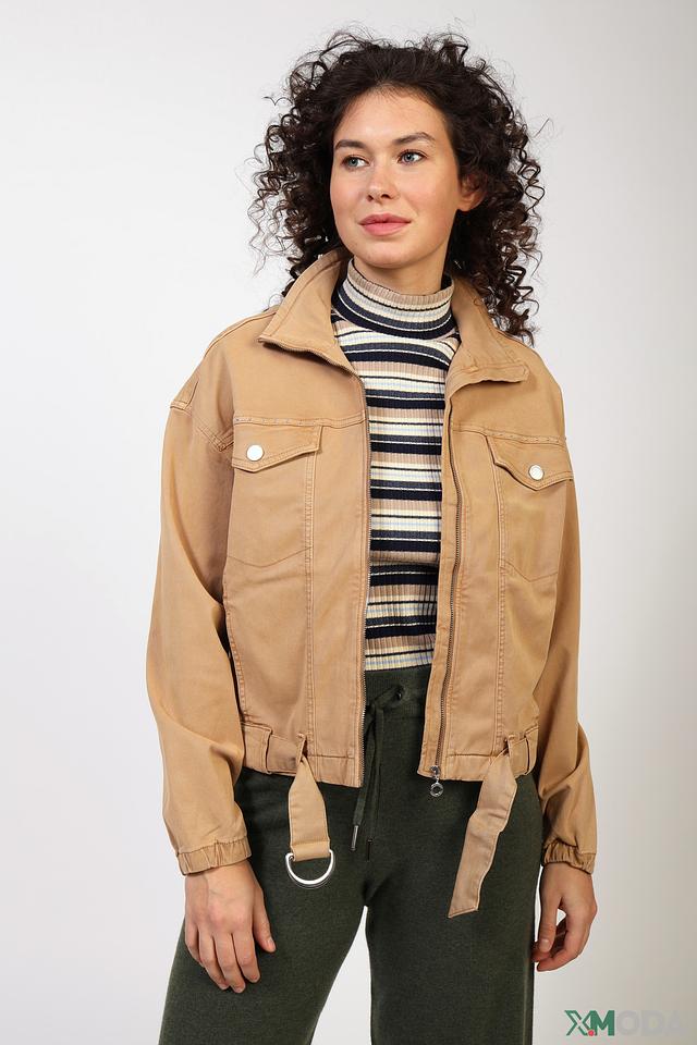 Жакет имеет прямой крой, воротник и застежку на молнию. Накладные карманы добавляют практичности, а пояс позволяет подчеркнуть силуэт. Детализированный дизайн с аккуратной отделкой делает этот жакет универсальным выбором для различных образов.
