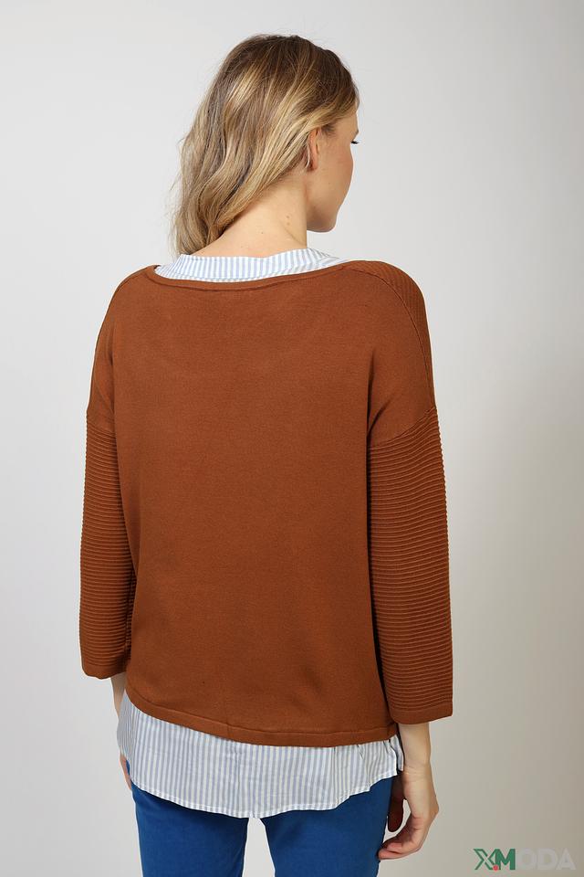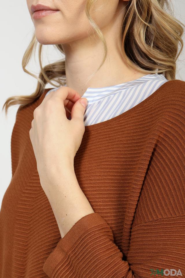Коричневая блуза Comma с выраженной текстурой и рукавами 3/4 станет отличным дополнением к вашему гардеробу. Модель свободного кроя с округлым вырезом горловины, идеально сочетается с другими элементами одежды. Состав: вискоза 81%, полиамид 17%, эластан 2%