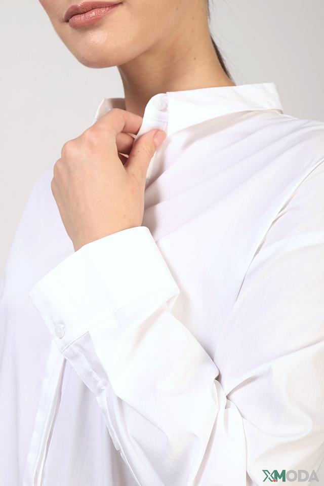 Рубашка выполнена в свободном оверсайз крое, который обеспечивает комфорт и свободу движений. Воротник рубашки классической формы, застежка – на пуговицы. Рукава рубашки длинные, с манжетами на пуговицах.