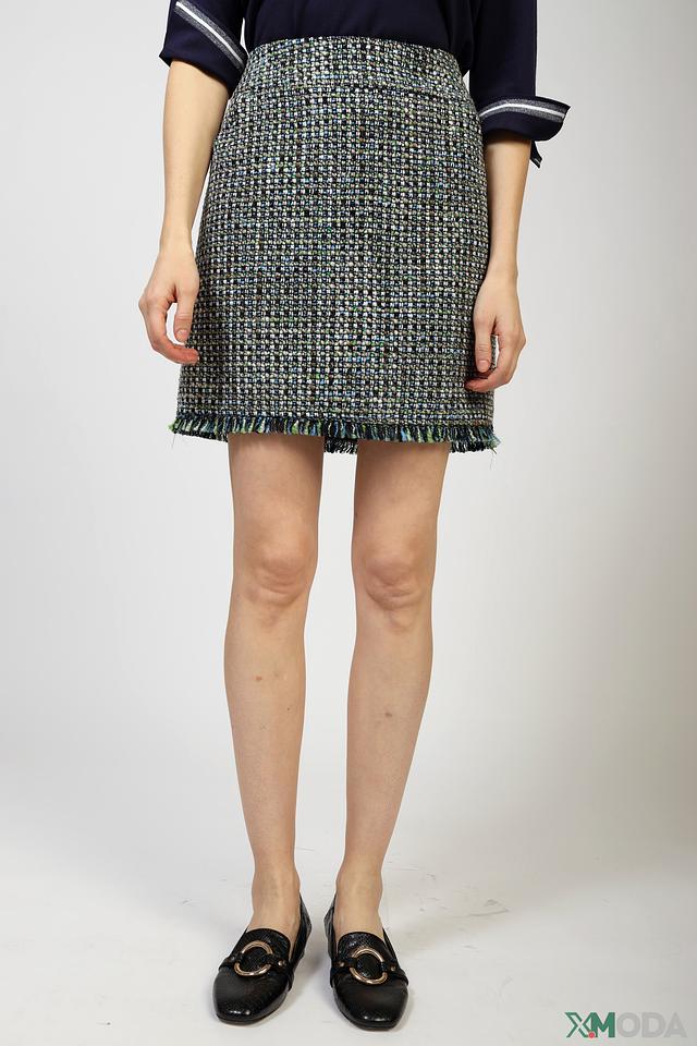 Юбка имеет прямую посадку и длину мини, подчеркивающую фигуру. Отделка бахромой по низу придает ей особый шарм и динамичность. Застежка-молния сзади обеспечивает удобство надевания и комфортную посадку.
