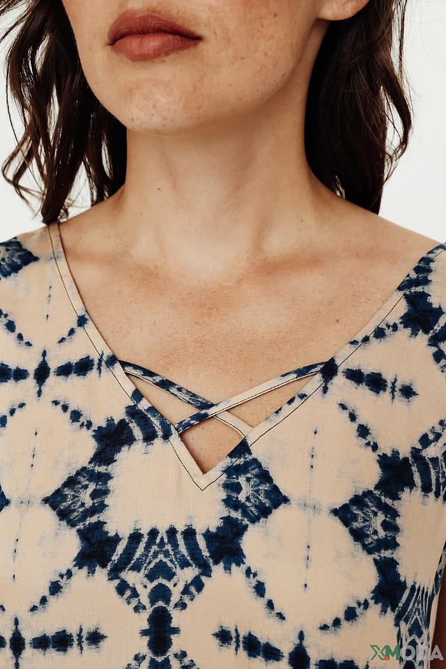 Этот стильный топ от Comma выполнен из мягкой и приятной к телу вискозы. Преобладающий цвет топа – бежевый, но благодаря эффектному принту в технике тай-дай, изделие выглядит очень свежо и необычно.