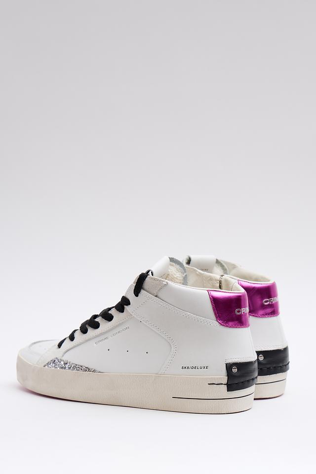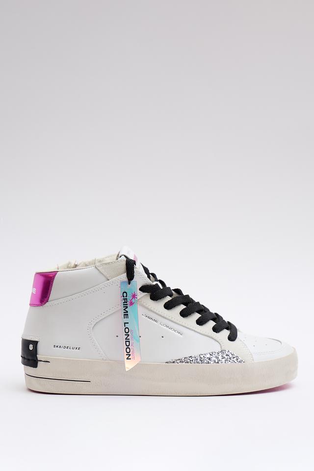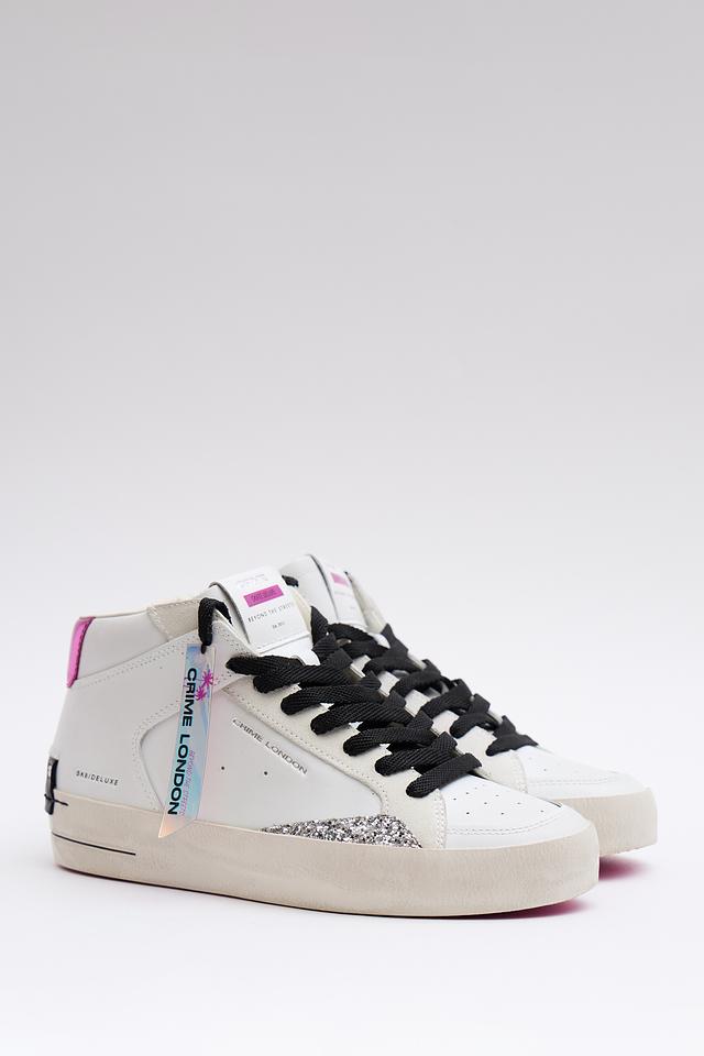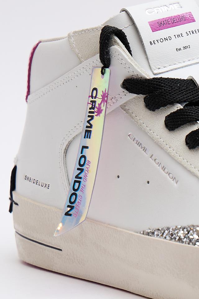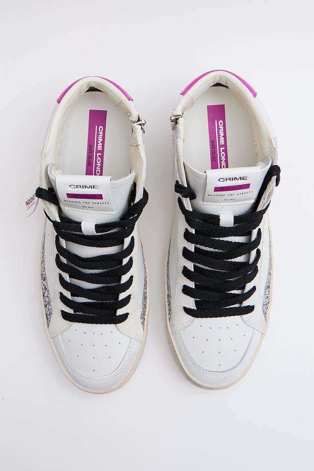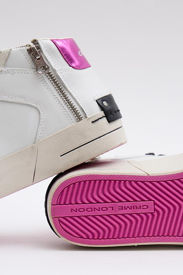 Женские кеды Crime London белого цвета с яркими фуксиевыми акцентами – стильная и удобная обувь для повседневной носки. Модель выполнена из кожи и текстиля, имеет удобную посадку и оригинальный дизайн. Состав: Состав_низ резина 100%, кожа 95%, Состав_подкладка кожа 50%, Состав_подкладка текстиль 50%, текстиль 5%