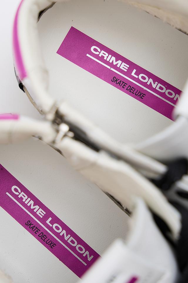 Подошва кед выполнена из резины, что гарантирует отличное сцепление с поверхностью и амортизацию при ходьбе. Внутренняя подкладка выполнена из кожи и текстиля, обеспечивая комфорт в течение всего дня. Логотип бренда Crime London размещен на боковой поверхности и язычке обуви.