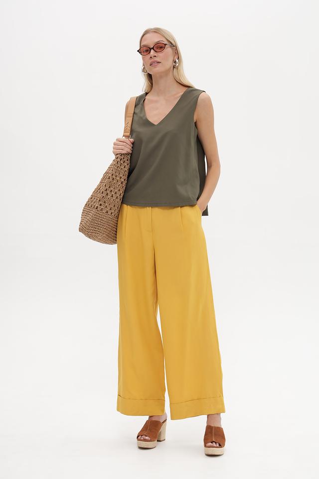 Женские брюки палаццо Croche горчичного цвета – стильное и комфортное решение для создания модных образов. Модель выполнена из вискозы с добавлением льна, что обеспечивает приятные тактильные ощущения и воздухопроницаемость. Состав: вискоза 80%, лен 20%