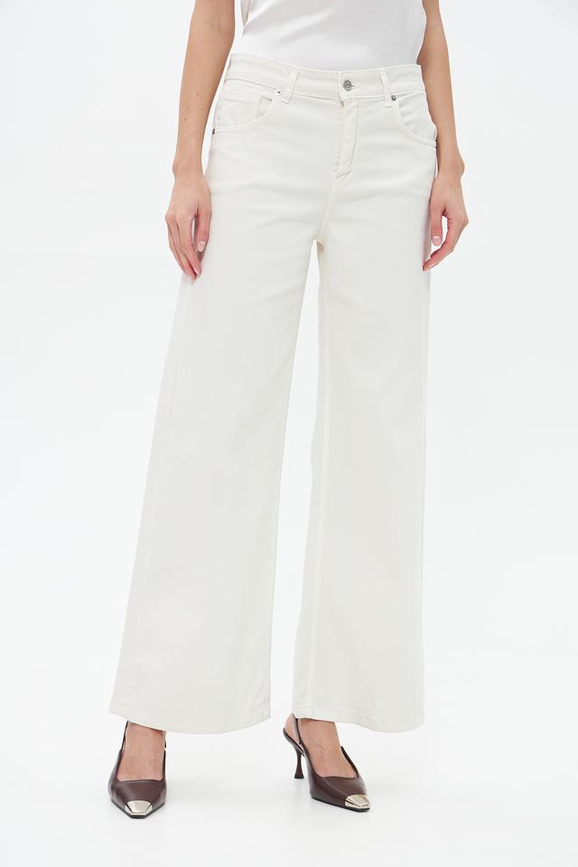 Женские джинсы клеш от Croche молочного цвета, выполнены из хлопка с добавлением эластана для комфорта. Модель отличается широким низом и классической посадкой. Состав: хлопок 97%, эластан 3%