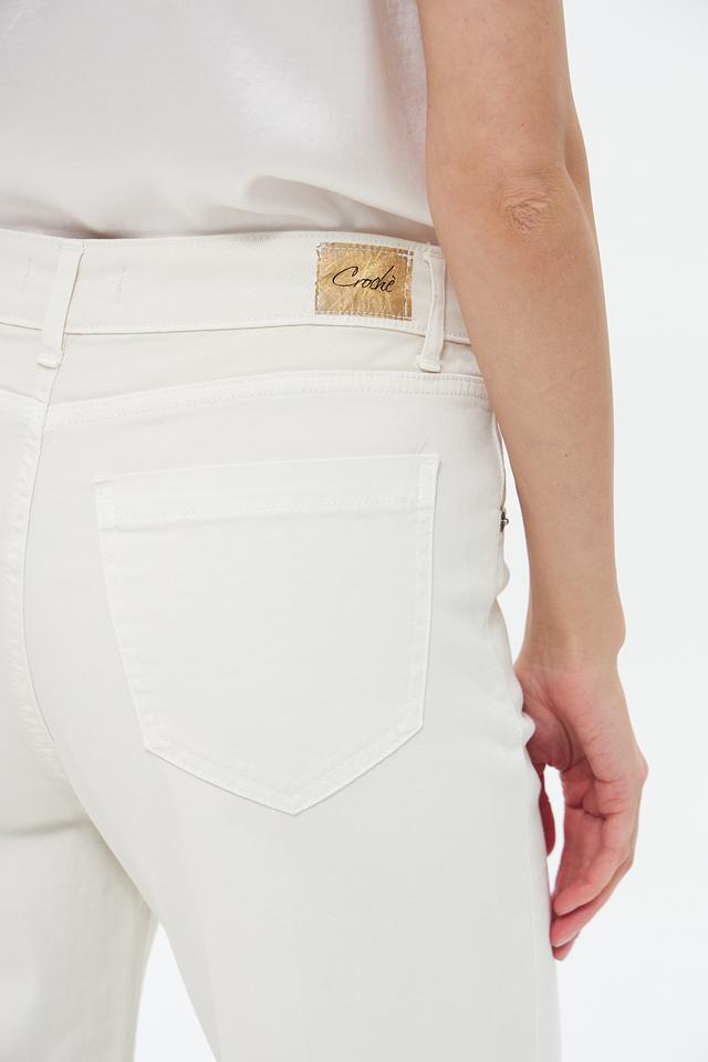 Представляем вашему вниманию стильные джинсы клеш от бренда Croche. Эта модель выполнена в нежном молочном цвете, который легко сочетается с различными элементами гардероба.