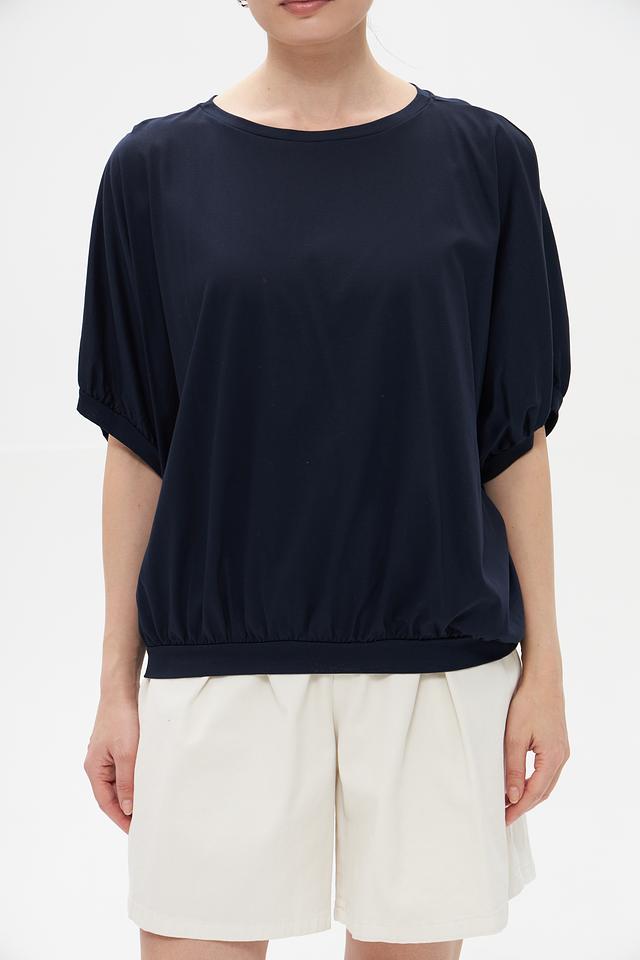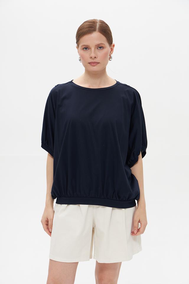 Тёмно-синяя футболка Croche с рукавом-фонарик и округлым вырезом горловины. Изготовлена из мягкого и приятного к телу сочетания хлопка и модала, обеспечивающего комфорт в течение всего дня. Стильный и лаконичный дизайн. Состав: хлопок 50%, модал 50%