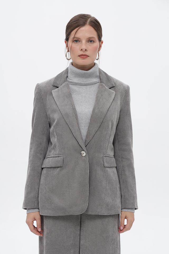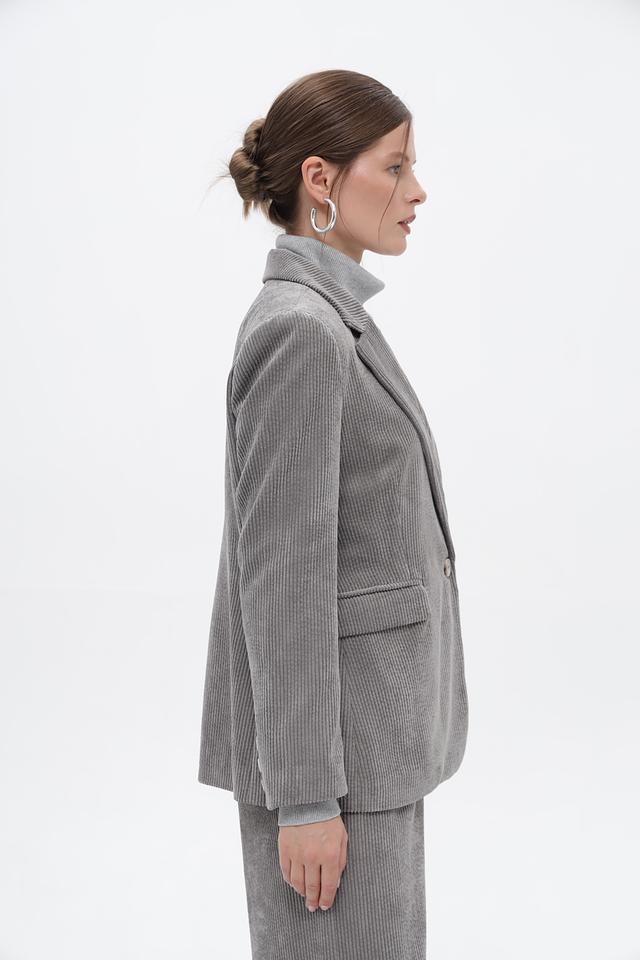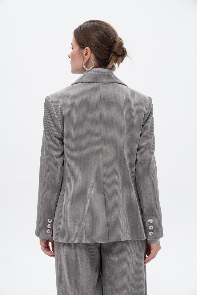 Серый жакет Croche из вельвета в полоску — стильное решение для создания элегантного образа. Изготовлен из полиэстера с добавлением полиамида и эластана, обеспечивающих комфорт и свободу движений. Состав: полиэстер 88%, полиамид 11%, эластан 1%