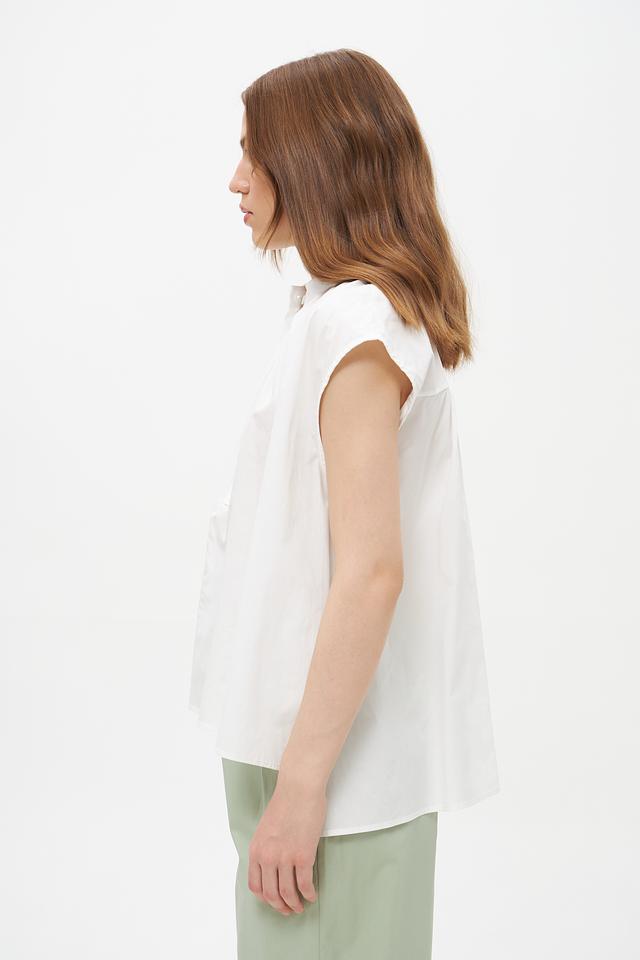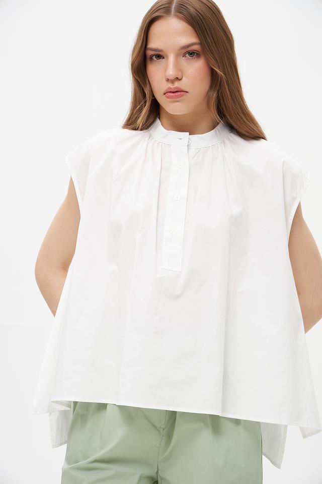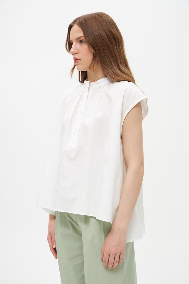 Белая блузка Croche из 100% хлопка с небольшими воланами на плечах. Объемный свободный крой и застежка на пуговицы создают комфортный и стильный образ. Идеальна для создания повседневных и деловых образов. Состав: хлопок 100%