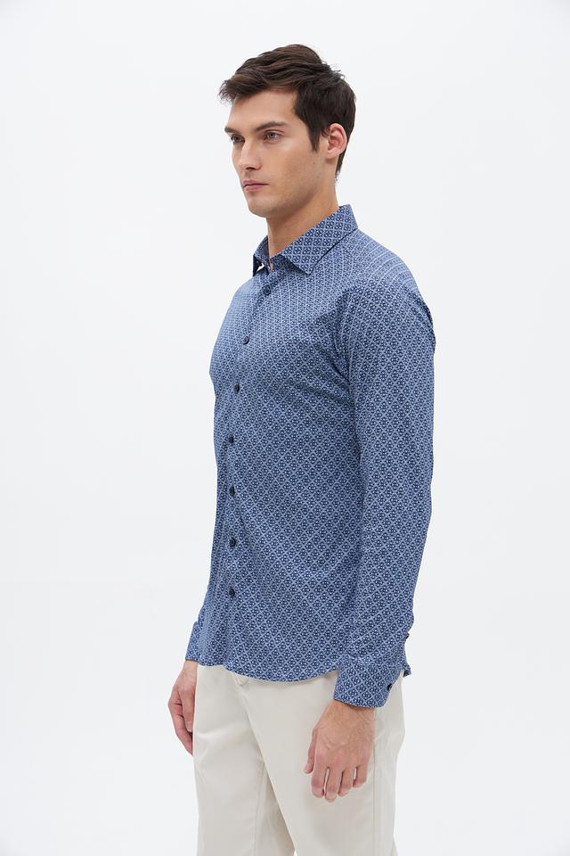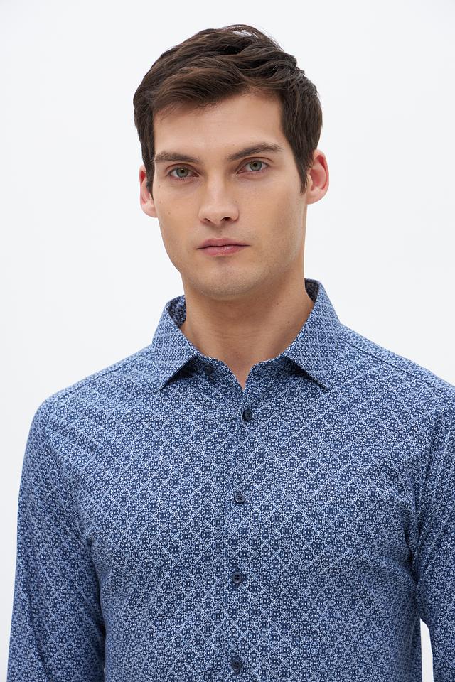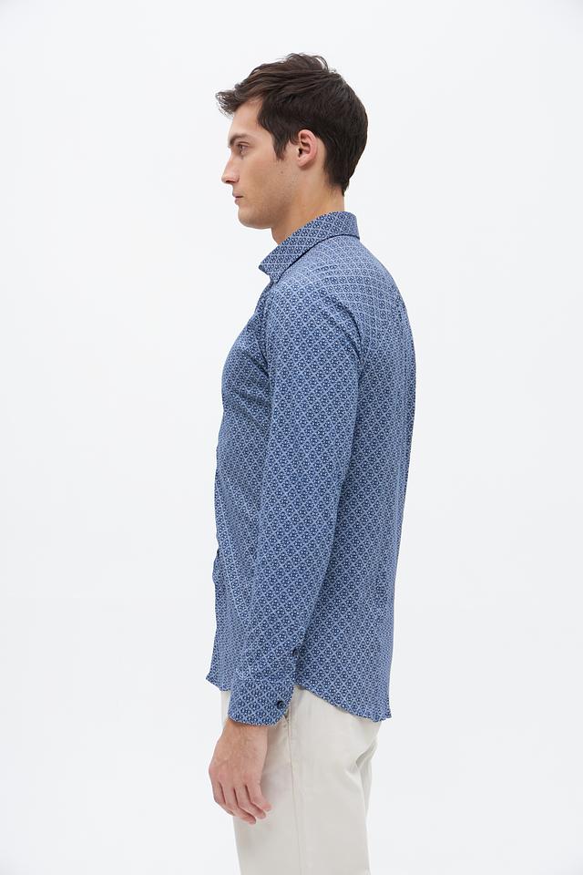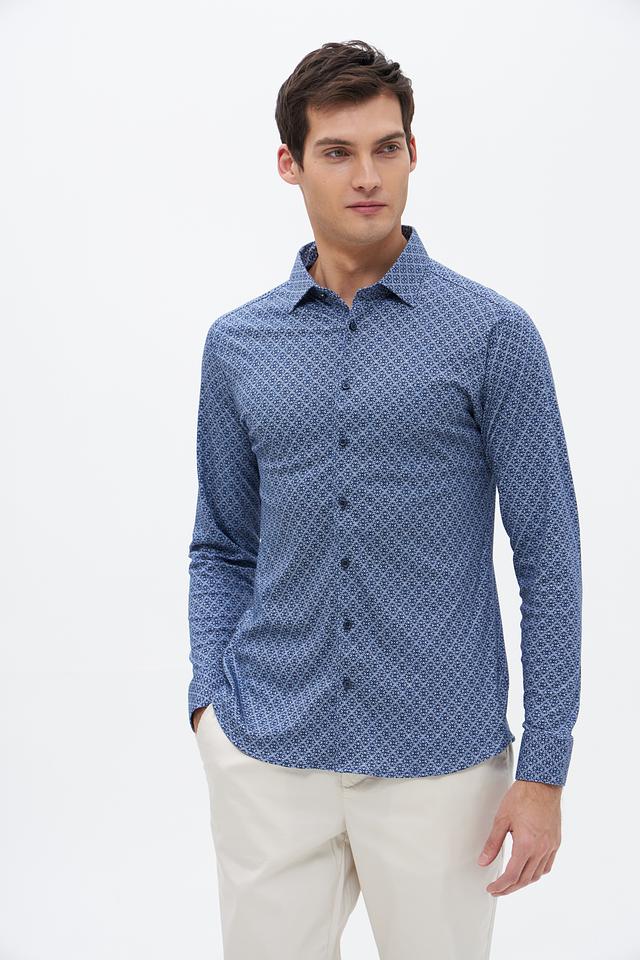Мужская рубашка Desoto голубого цвета с геометрическим принтом. Изготовлена из 100% хлопка, обеспечивающего комфорт и воздухопроницаемость. Отличный выбор для создания стильного повседневного образа. Состав: хлопок 100%