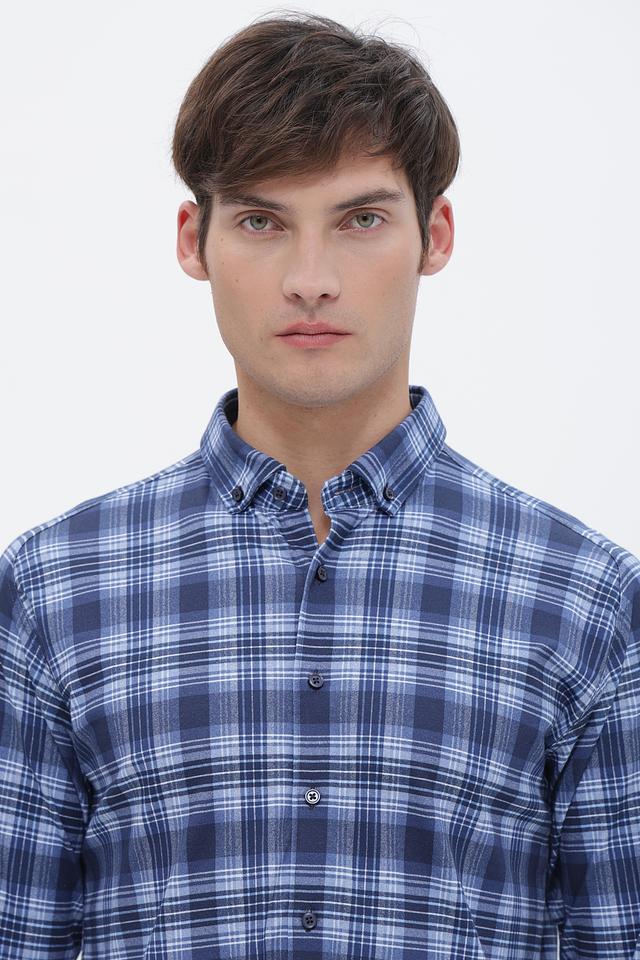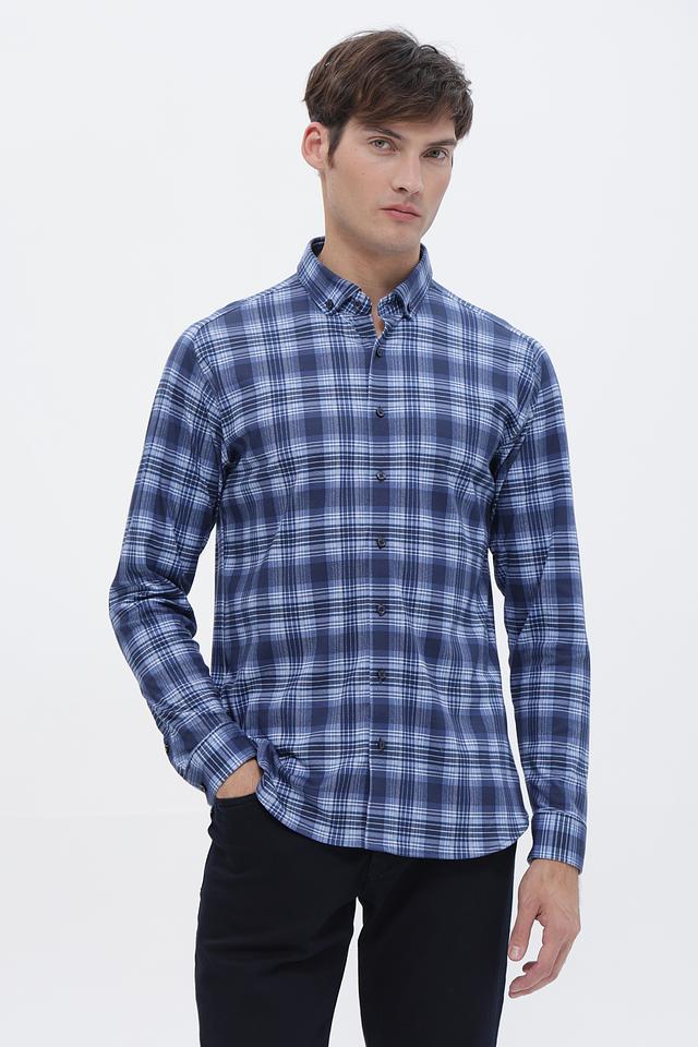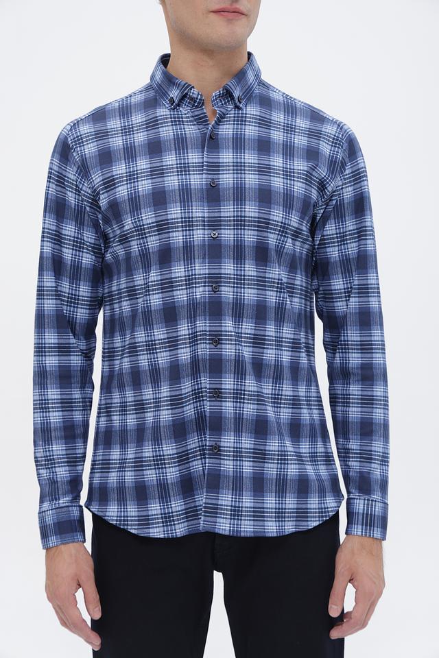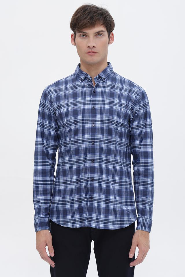 Мужская рубашка Desoto синего цвета в классическую клетку. Изготовлена из 100% хлопка, обеспечивающего комфорт и воздухопроницаемость. Отличный выбор для создания повседневного образа. Состав: хлопок 100%