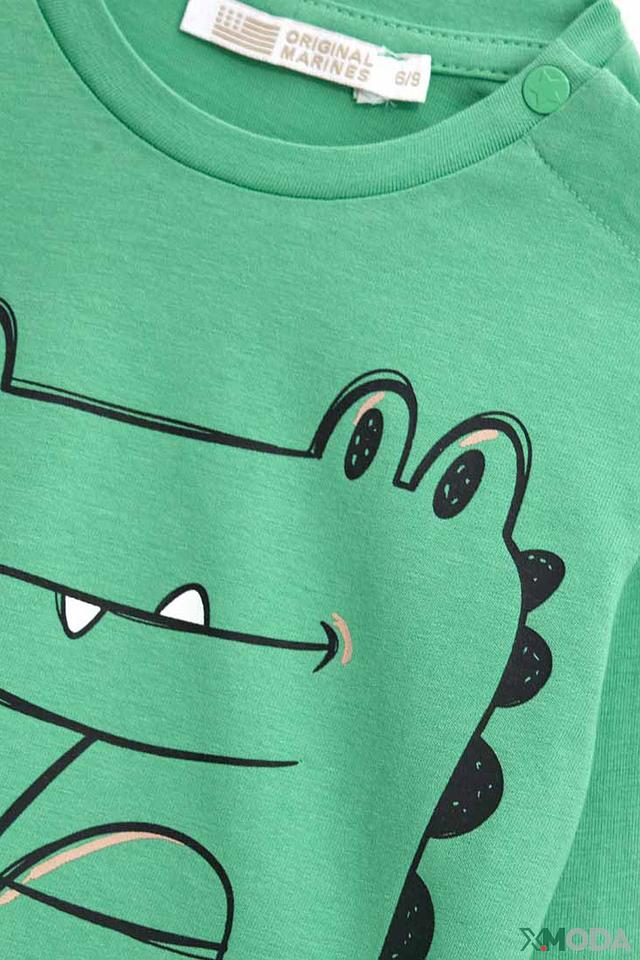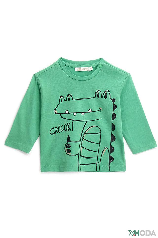 Зелёная футболка Original Marines с ярким принтом крокодила – отличный выбор для маленьких модников. Изготовлена из мягкого хлопка, обеспечивающего комфорт в течение дня. Удобный крой и забавный дизайн. Состав: хлопок 100%