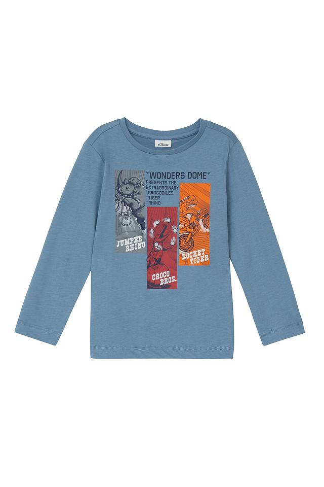 Голубая футболка s.Oliver для мальчика с ярким принтом. Изготовлена из 100% хлопка, обеспечивающего комфорт и воздухопроницаемость. Отличный выбор для повседневной носки. Состав: хлопок 100%