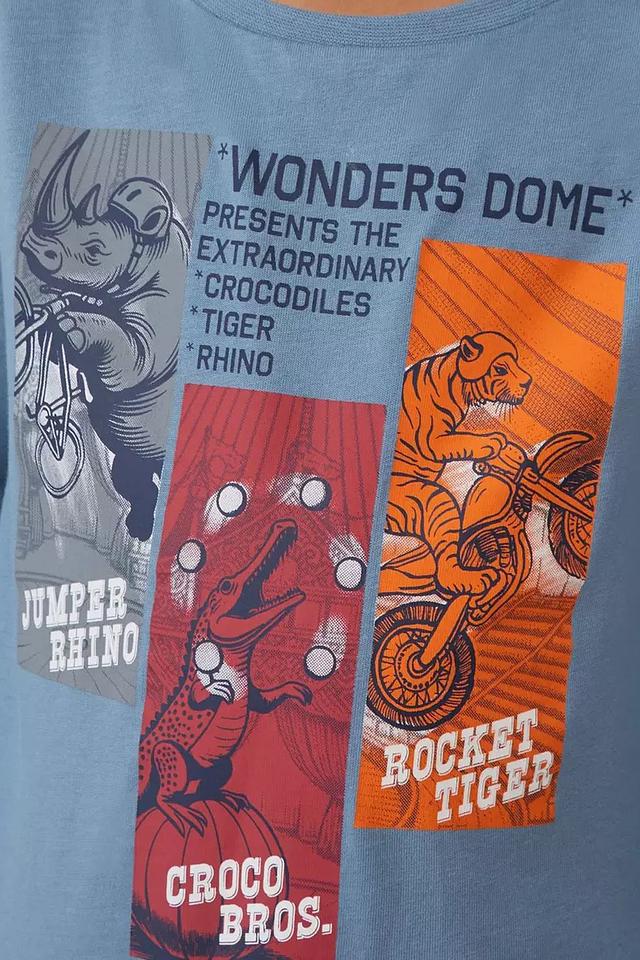 Эта стильная футболка от s.Oliver станет отличным дополнением к гардеробу вашего мальчика. Футболка выполнена в приятном голубом цвете и украшена ярким, красочным принтом с изображением различных животных: носорога, тигра и крокодила.