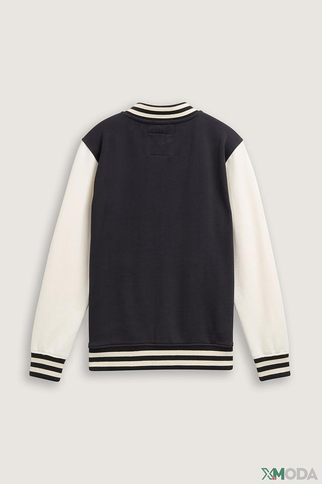 Этот джемпер от Tom Tailor станет отличным дополнением к гардеробу вашего мальчика. Модель выполнена в стиле varsity jacket, сочетая в себе тёмно-синий основной цвет и контрастные белые рукава и воротник.