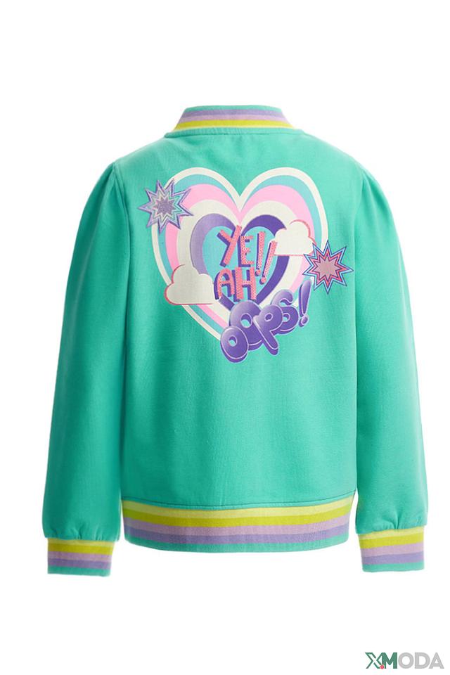 Мятная куртка-бомбер от Original Marines – стильная и удобная модель для девочки. Украшена яркими аппликациями в виде сердечек и надписей, выполнена из мягкого хлопка с добавлением эластана. Состав: хлопок 96%, эластан 4%